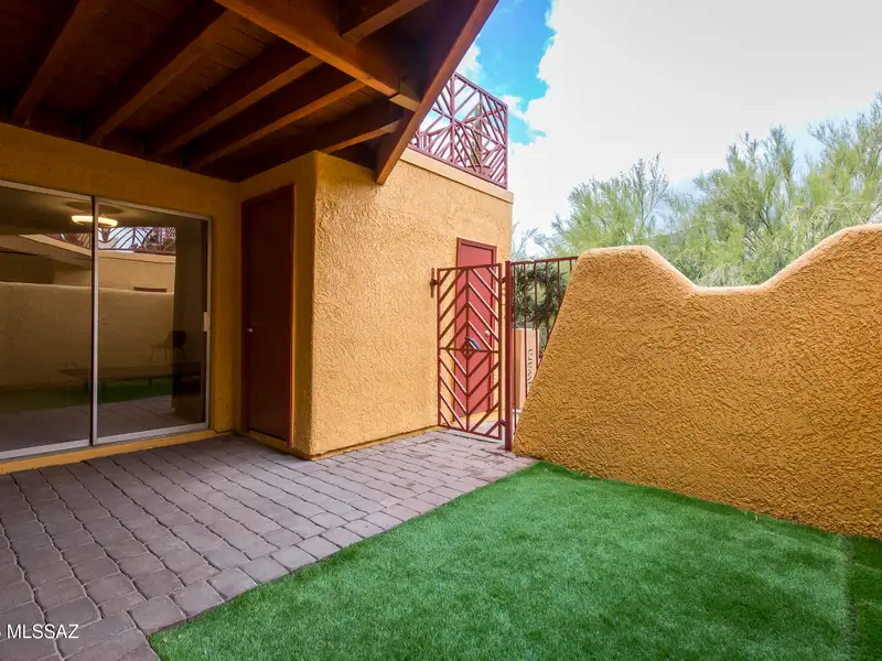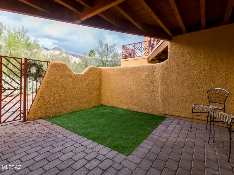 - Gated patio with artificial turf