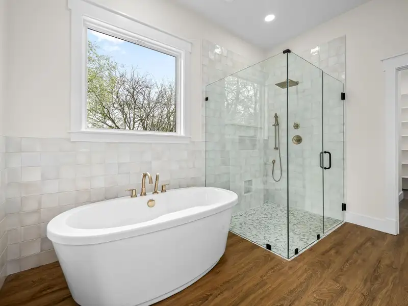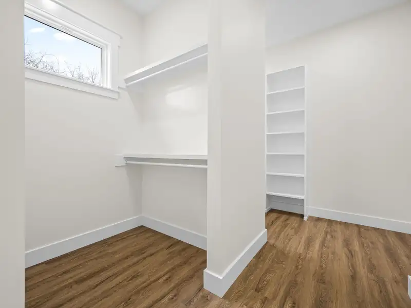 - Large walk-in closet with custom cabinetry