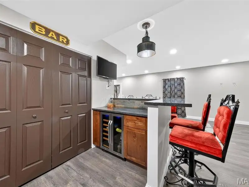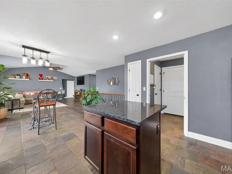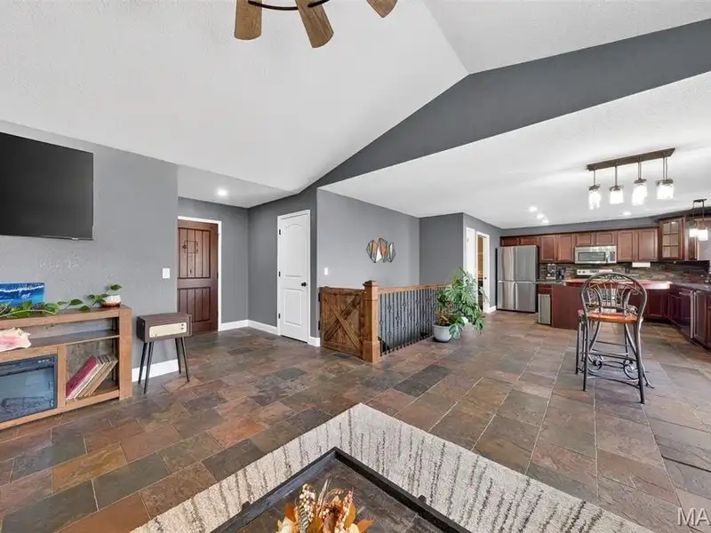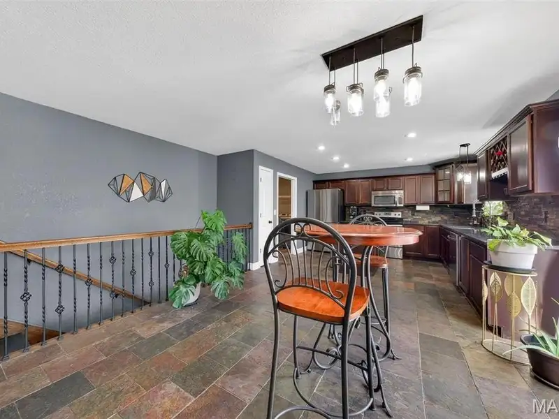 Welcome home! This elegant, meticulously maintained four bedroom, three bathroom home is an absolute showstopper. The stunning home offers a perfect blend of comfort, functionality, and thoughtful updates throughout. From the moment you enter you feel a sense of elegance with the slate tile throughout the open living, kitchen area. The home is complemented with vaulted, coffered ceiling's giving it a feel of spaciousness. The kitchen has granite counter tops, custom cabinetry and a central island with plenty of space for entertaining. There is a walk out from the dining room to the sweetest deck spot to have a morning cup of coffee and welcome all the birds that have been well taken care of over the years:) All of the windows in this open space bring in an abundance of natural lighting. The primary suite oasis has a large window facing the wooded back yard, coffered ceilings, and a walk in closet to admire your large shoe collection. The primary bath is like walking into a spa. Just wait until you see! If that is not enough, the second bathroom features a large jetted tub. Let's retreat to the lower level, you will find a spacious 9ft poor finish that can easily serve as a recreational area or customize to suit your lifestyle. The craftsmanship in the bar will make you feel as though you have entered your own speakeasy. Boasting with handcrafted cabinetry and waterfall granite countertops, the beverage cooler is just the cherry on top. The basement also has an additional couple rooms for storage, a fourth bedroom, a full bathroom, and a room fully wired for a theatre! There is a walk out from the lower level that backs up to a semi wooded area giving you plenty of privacy. We cannot forget the massive two car garage completed with insulated and painted walls to match the upscale epoxy flooring. You will never have to worry about spills or stains as this preserves your garage floors. A car enthusiast dream. Let's just say the homeowner has put a lot of love into giving you this unique blend of high end finishes and practical amenities. Don't miss your chance to call this stunning property your own! Agent related to seller.