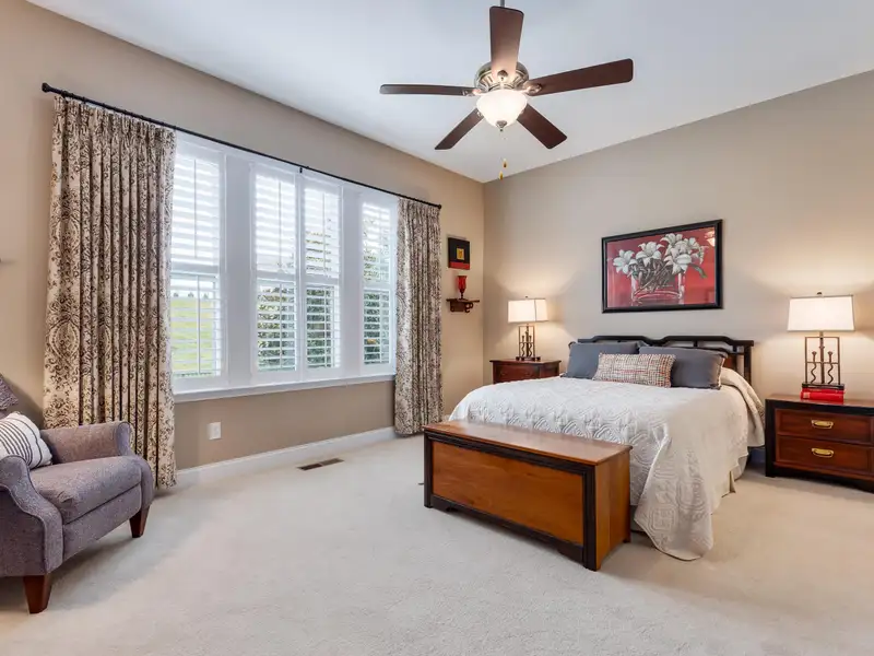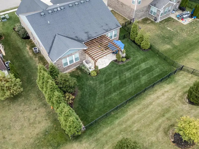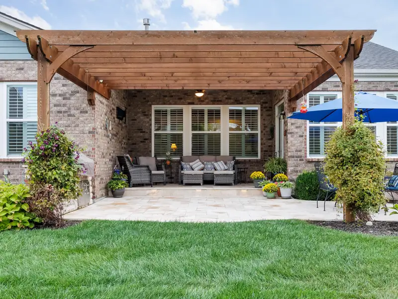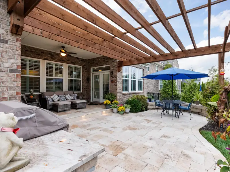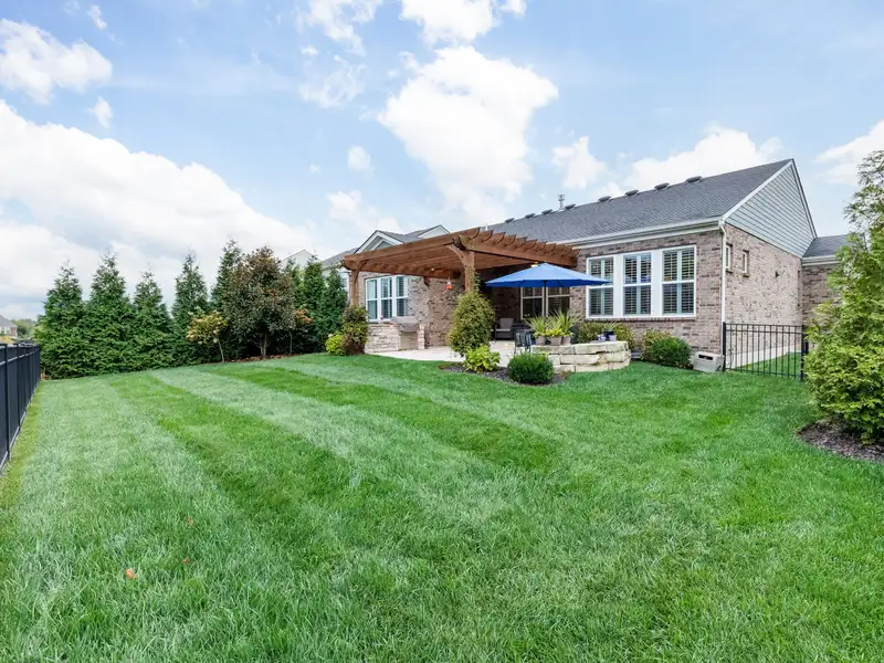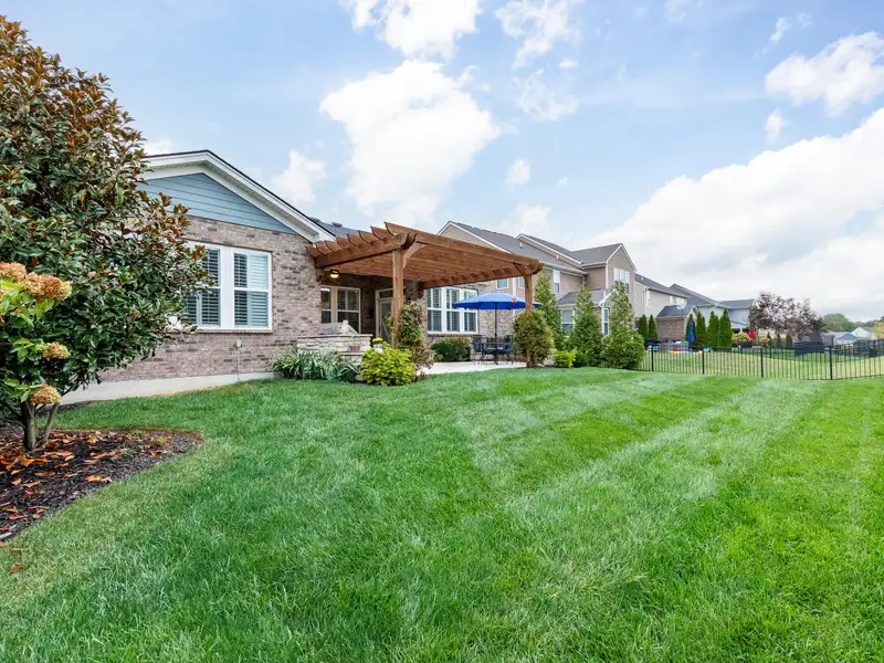 Life in Triple Crown at its best. From the moment you step inside this brick and stone ranch, you'll notice how open and inviting it feels. Generous 10' ceilings and sun-filled rooms create the perfect backdrop for daily life and entertaining. The kitchen is truly the heart of the home, with granite counters, stainless appliances, and a gas cooktop ready for weeknight meals or a crowd.The finished lower level with 9' ceilings gives you the flexibility to spread outwhether that's movie nights, a play space, or hosting overnight guestsBut the showstopper is outside. Designed by Egbers, the backyard is made for gatherings: a travertine-tiled covered porch, built-in grill, pergola, and lush landscaping that's both beautiful and easy to maintain with a smart irrigation system. Picture summer evenings here, grilling with friends while family or pets play safely in the fenced yard.Thoughtful details like custom closets, plantation shutters, a garage with built-in storage, and included security systems mean you won't have to add a thing to this meticulously maintained homejust move in and make it yours.