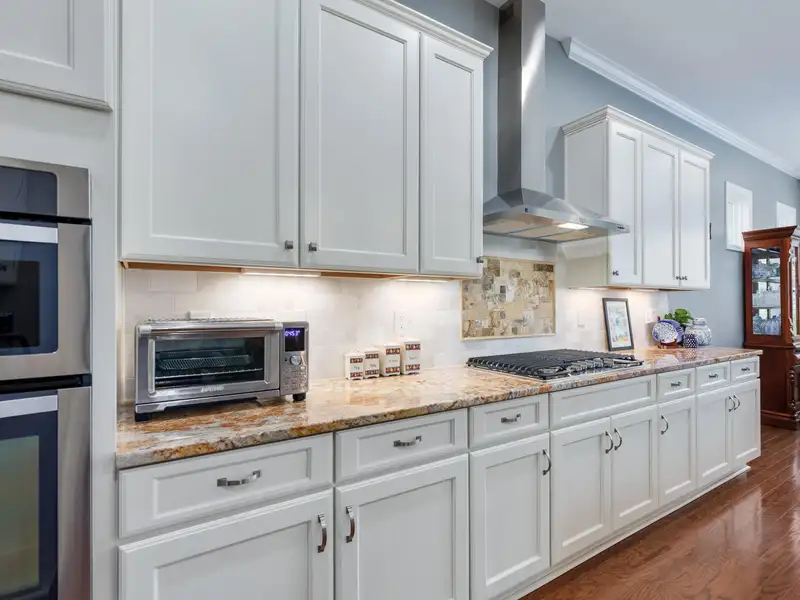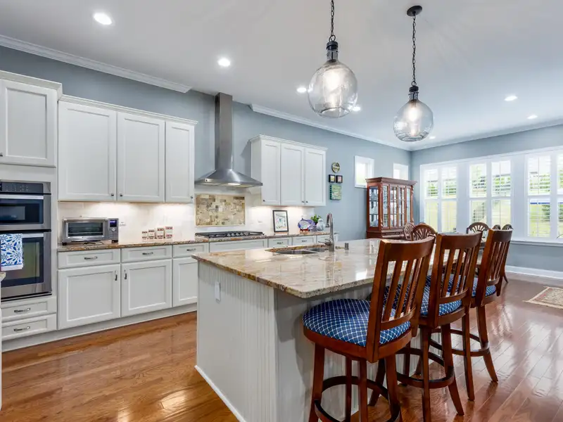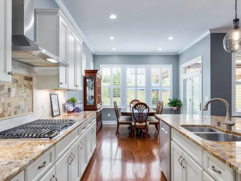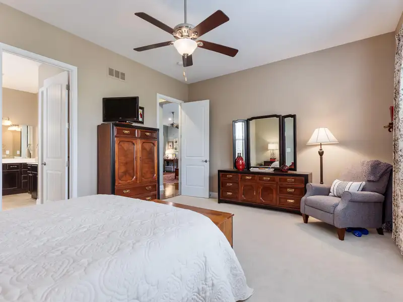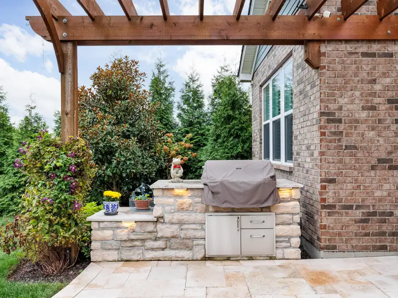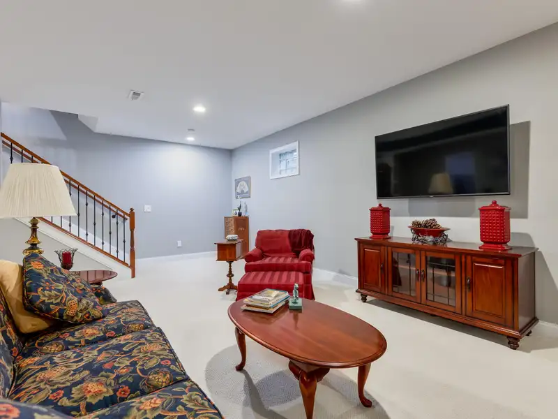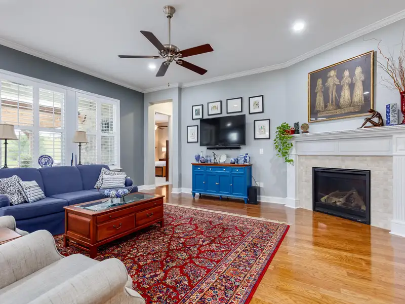 Life in Triple Crown at its best. From the moment you step inside this brick and stone ranch, you'll notice how open and inviting it feels. Generous 10' ceilings and sun-filled rooms create the perfect backdrop for daily life and entertaining. The kitchen is truly the heart of the home, with granite counters, stainless appliances, and a gas cooktop ready for weeknight meals or a crowd.The finished lower level with 9' ceilings gives you the flexibility to spread outwhether that's movie nights, a play space, or hosting overnight guestsBut the showstopper is outside. Designed by Egbers, the backyard is made for gatherings: a travertine-tiled covered porch, built-in grill, pergola, and lush landscaping that's both beautiful and easy to maintain with a smart irrigation system. Picture summer evenings here, grilling with friends while family or pets play safely in the fenced yard.Thoughtful details like custom closets, plantation shutters, a garage with built-in storage, and included security systems mean you won't have to add a thing to this meticulously maintained homejust move in and make it yours.