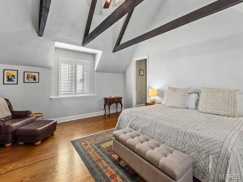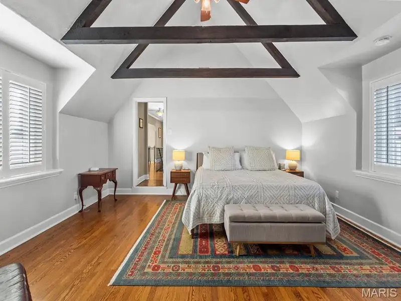 - Spacious primary bedroom with vaulted ceiling