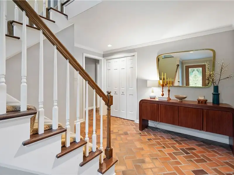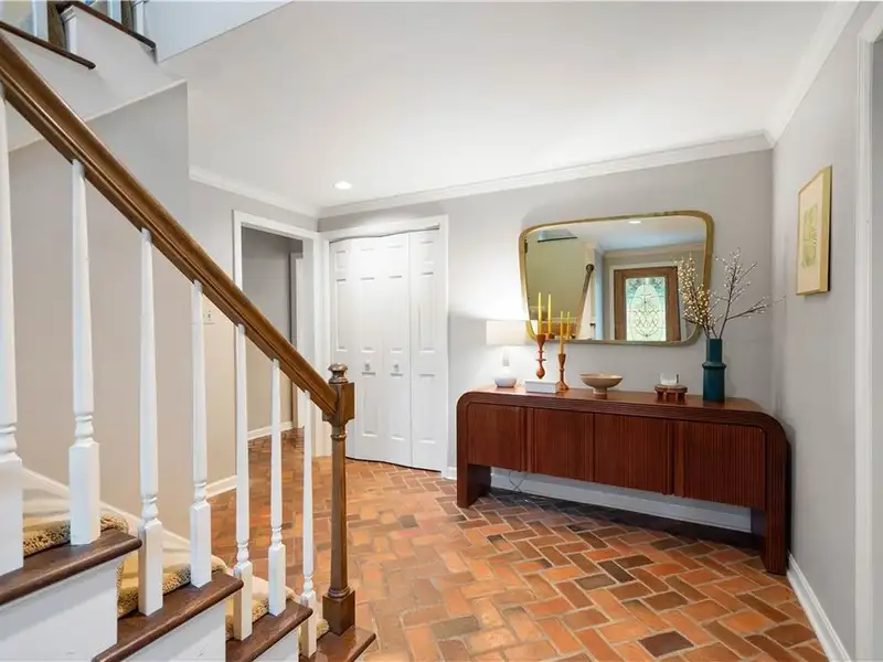 - Custom brick-tiled entry
