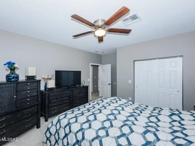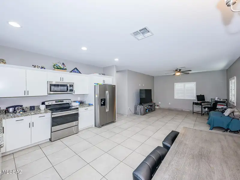 Come check out this newer horse property on over an acre lot that has a 3bd/2ba 1400 Sq Ft beauty in the Vail School District! Enjoy panoramic and mountain views from this parcel! Your home boasts 9 ft ceilings, stainless steel appliances, granite kitchen and bath counters, washer and dryer, ceiling fans and tasteful tile throughout and no carpets! Upgraded shutters installed on windows, enjoy the convenient storage shed on property and money saving solar system that will be completely paid off at COE! Bring your boat and other toys, build a pool and make this home!!