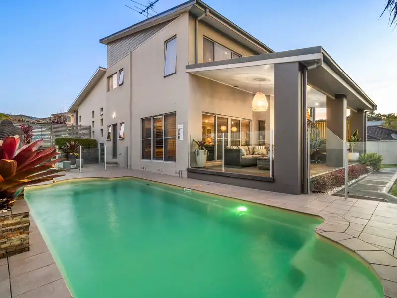 Fresh air, poolside vibes, and a highly sought-after lifestyle location allow this family masterpiece to deliver the thrill of holiday living every day of the week. Spanning free-flowing split-levels and taking cues from its coastal surroundings, interiors reveal crisp décor with the warmth of timber flooring and the class of plantation shutters. Modern throughout, a stylish island kitchen anchors an open-style living area plus there's a versatility of another oversized living zone on the top floor - this four bedroom plus office haven provides ample space for families at all stages of life. A private garden oasis adjoins a beautiful outdoor living area providing a beautiful space to spark up the BBQ for weekend entertaining, and the inclusion of a stunning in-ground pool means you can choose between cooling off at home or on the lake. A flame effect gas fireplace, ducted air-conditioning and two bathrooms plus a powder room keep comfort and convenience levels high, while the attached double garage offers internal access to make unpacking the car a breeze.