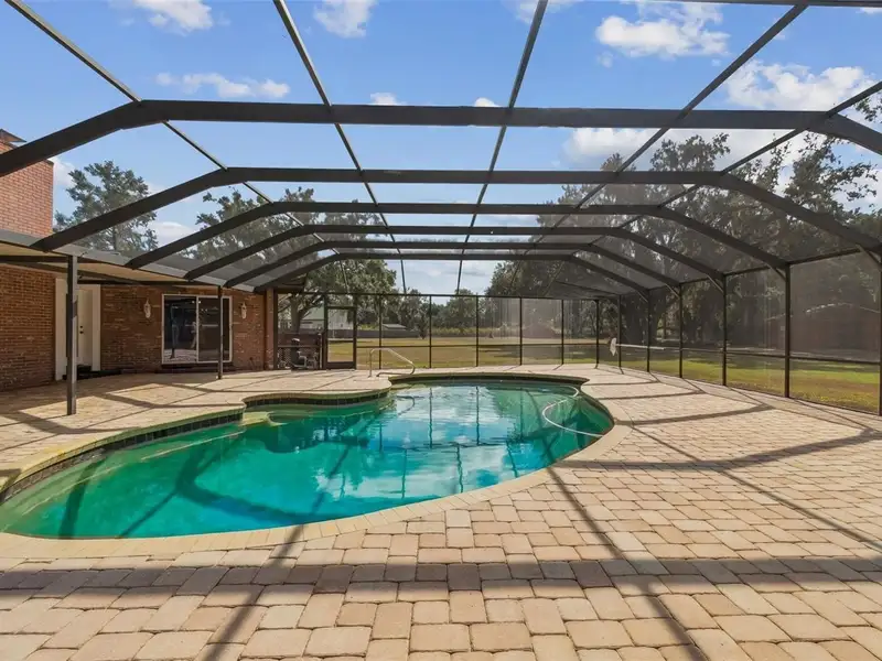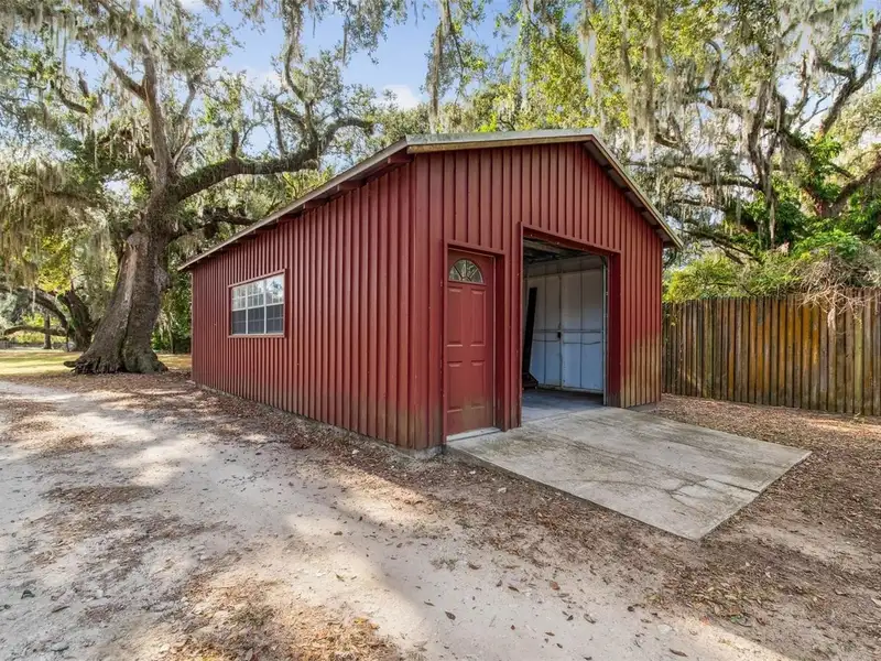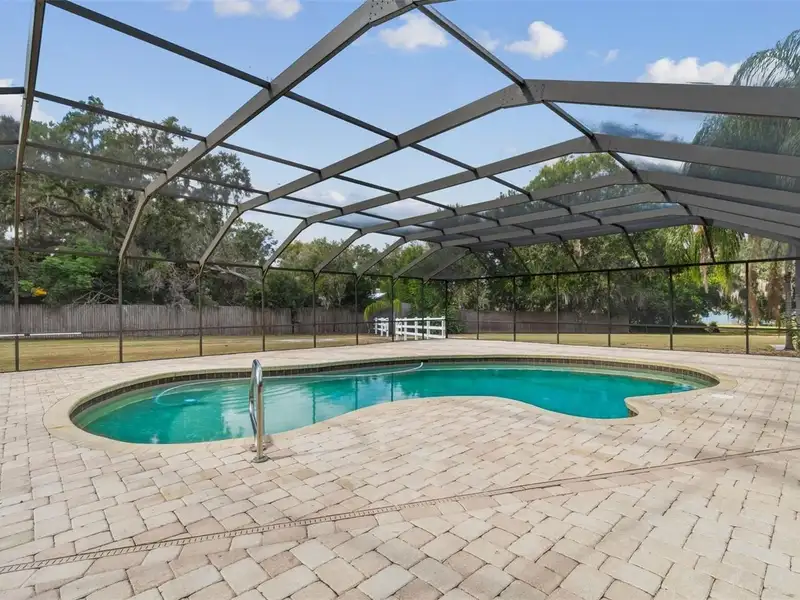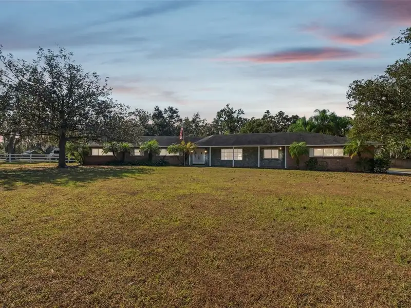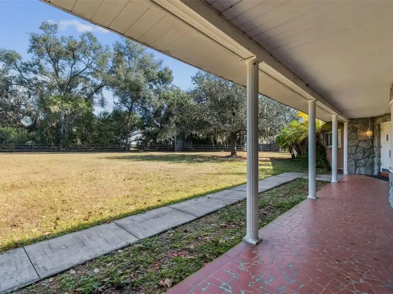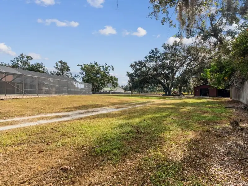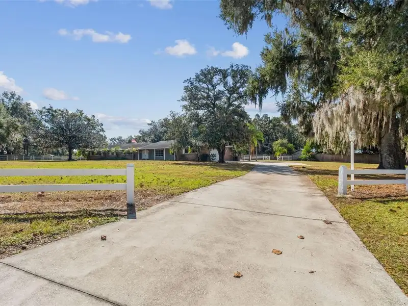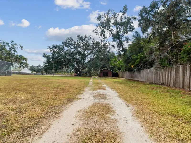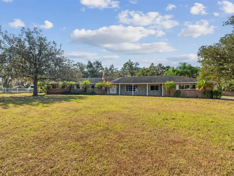 Welcome to your private slice of Valrico paradise. Tucked away at the end of a quiet cul-de-sac, this 3,187 sq. ft. estate sits on 4.12 acres with water views of the private waters of Valrico Lake—and lake access included. Properties like this rarely come available. The home is designed for comfort, gatherings, and effortless indoor–outdoor living. Step through double doors into a spacious foyer. The formal living room showcases charming bay windows, while the large formal dining room—complete with a bi-directional door to the kitchen—is perfect for hosting holidays and special occasions. The kitchen offers granite countertops, abundant cabinetry, stainless steel appliances, and its own bay window with peaceful views. It opens to a warm, inviting family room centered around a stone wood-burning fireplace, with multiple entryways leading to the lanai. A generous bonus/flex room also connects directly to the outdoor living space, making it ideal for game nights, hobbies, or a second gathering area. The primary suite is a true retreat, featuring a private sitting room and exclusive access to its own screened patio. The ensuite bathroom includes dual sinks, a large walk-in shower, and a spacious walk-in closet with built-in shelving. Two additional oversized bedrooms, 3.5 total bathrooms, and a large indoor laundry room provide plenty of room to spread out. The home also includes a wheelchair ramp that can stay or be easily removed, along with an extra storage room off the garage. Step outside to the massive screened lanai, highlighted by a sparkling 12-foot-deep in-ground pool and an extended paver patio—an entertainer’s dream. Whether you're hosting a summer BBQ, unwinding after a long day, or watching wildlife near the lake, this space is meant to be lived in. The entire property is fully fenced, with an oversized driveway offering ample parking for guests, trailers, equipment, or all of the above. Two impressive barns—both powered with electric—expand the possibilities even further. Barn 1 (approx. 50’ x 20’) features garage doors on both ends, and an attached extension perfect for a greenhouse or additional storage. Barn 2 (approx. 58’ x 36’) includes built-in shelving and generous space ideal for workshops, business operations, hobbies, or agricultural use. The property is zoned agricultural, offering flexibility you simply don’t find in a typical residential setting. A gated rear entrance at the back of the property provides convenient access to Front St., especially for larger vehicles and equipment. With well and septic, a water softener, private lake access, two powered barns, and 4.12 acres of usable land, this estate blends privacy, space, and endless opportunity—all in a highly desirable Valrico location. Bring your vision. Bring your toys. Bring your business. NO HOA or CDD! This property is ready for whatever you dream next. Only 3 miles from State Road 60, where you’ll find every convenience you will need- shopping and dining, close to the hospital, near major interstates for easy commuting, and only about 16 miles from Downtown Tampa.
