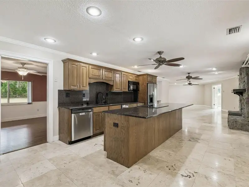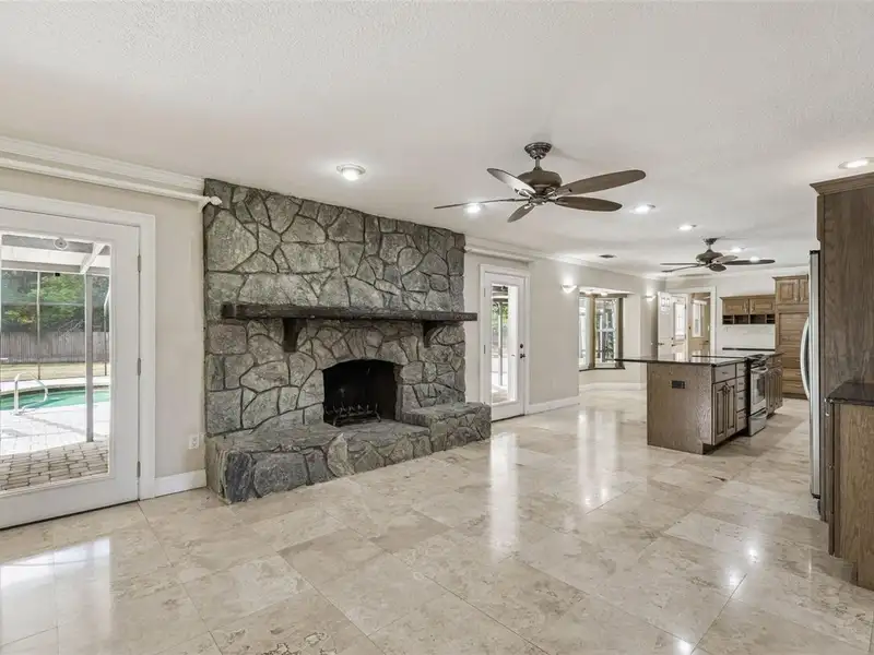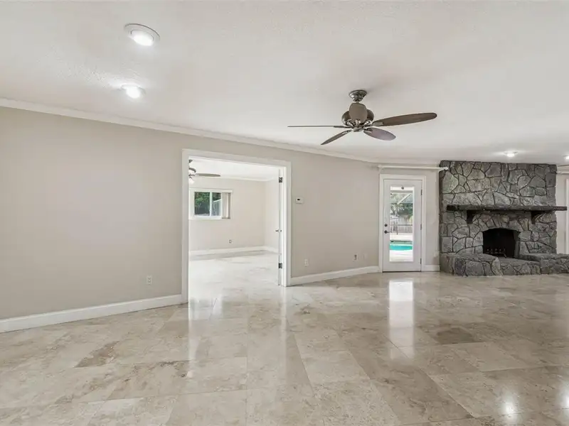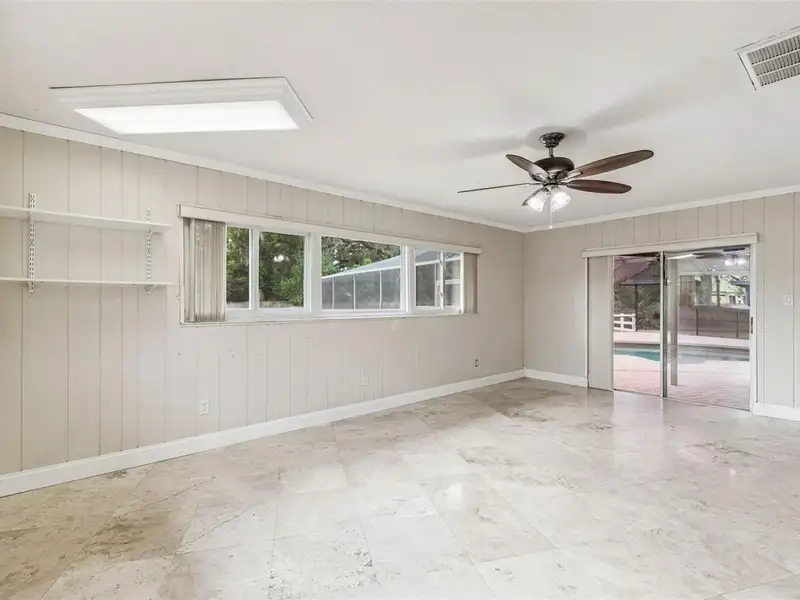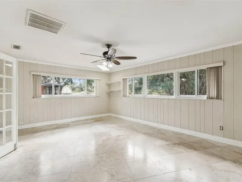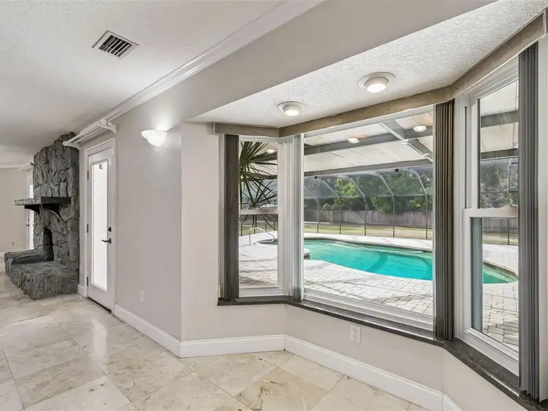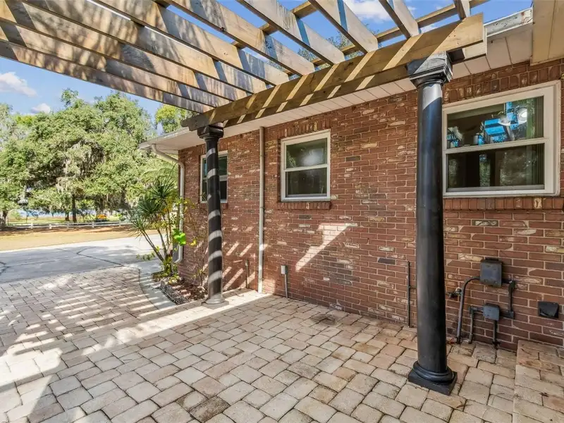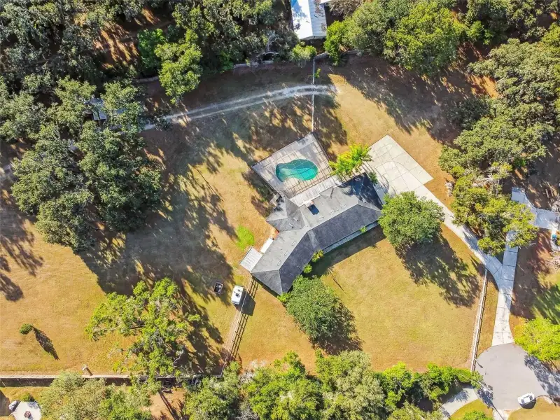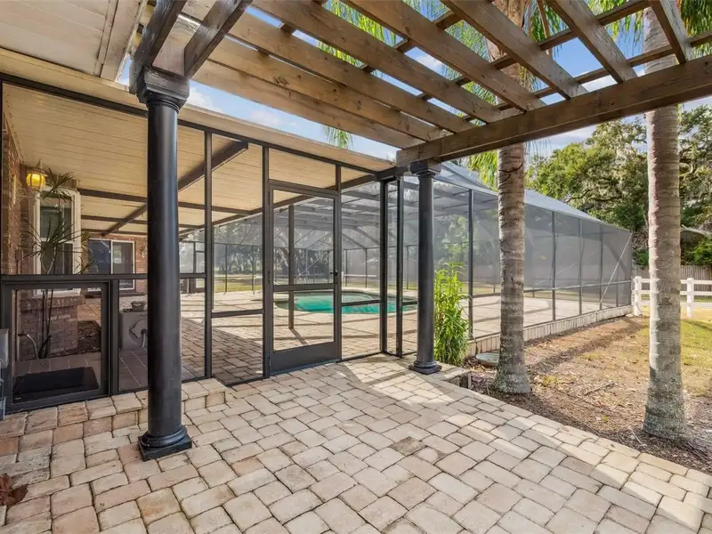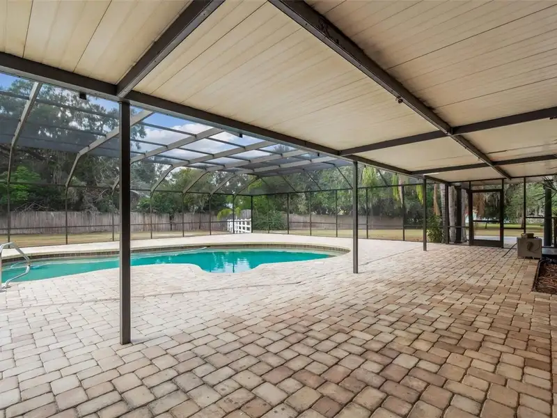 Welcome to your private slice of Valrico paradise. Tucked away at the end of a quiet cul-de-sac, this 3,187 sq. ft. estate sits on 4.12 acres with water views of the private waters of Valrico Lake—and lake access included. Properties like this rarely come available. The home is designed for comfort, gatherings, and effortless indoor–outdoor living. Step through double doors into a spacious foyer. The formal living room showcases charming bay windows, while the large formal dining room—complete with a bi-directional door to the kitchen—is perfect for hosting holidays and special occasions. The kitchen offers granite countertops, abundant cabinetry, stainless steel appliances, and its own bay window with peaceful views. It opens to a warm, inviting family room centered around a stone wood-burning fireplace, with multiple entryways leading to the lanai. A generous bonus/flex room also connects directly to the outdoor living space, making it ideal for game nights, hobbies, or a second gathering area. The primary suite is a true retreat, featuring a private sitting room and exclusive access to its own screened patio. The ensuite bathroom includes dual sinks, a large walk-in shower, and a spacious walk-in closet with built-in shelving. Two additional oversized bedrooms, 3.5 total bathrooms, and a large indoor laundry room provide plenty of room to spread out. The home also includes a wheelchair ramp that can stay or be easily removed, along with an extra storage room off the garage. Step outside to the massive screened lanai, highlighted by a sparkling 12-foot-deep in-ground pool and an extended paver patio—an entertainer’s dream. Whether you're hosting a summer BBQ, unwinding after a long day, or watching wildlife near the lake, this space is meant to be lived in. The entire property is fully fenced, with an oversized driveway offering ample parking for guests, trailers, equipment, or all of the above. Two impressive barns—both powered with electric—expand the possibilities even further. Barn 1 (approx. 50’ x 20’) features garage doors on both ends, and an attached extension perfect for a greenhouse or additional storage. Barn 2 (approx. 58’ x 36’) includes built-in shelving and generous space ideal for workshops, business operations, hobbies, or agricultural use. The property is zoned agricultural, offering flexibility you simply don’t find in a typical residential setting. A gated rear entrance at the back of the property provides convenient access to Front St., especially for larger vehicles and equipment. With well and septic, a water softener, private lake access, two powered barns, and 4.12 acres of usable land, this estate blends privacy, space, and endless opportunity—all in a highly desirable Valrico location. Bring your vision. Bring your toys. Bring your business. NO HOA or CDD! This property is ready for whatever you dream next. Only 3 miles from State Road 60, where you’ll find every convenience you will need- shopping and dining, close to the hospital, near major interstates for easy commuting, and only about 16 miles from Downtown Tampa.