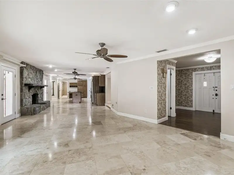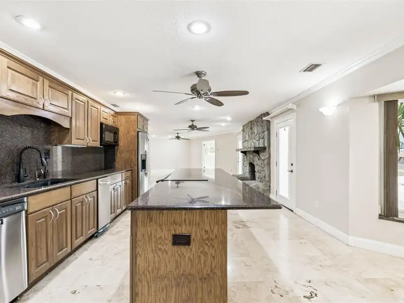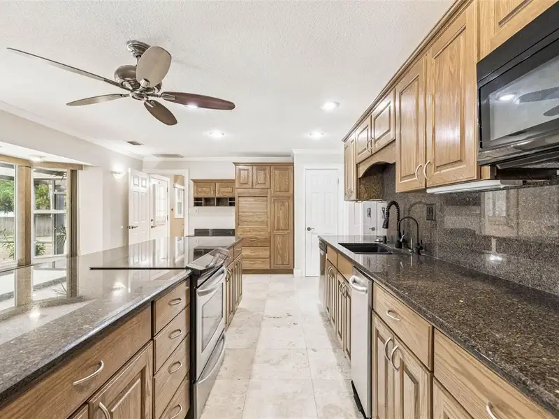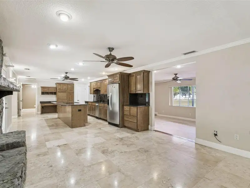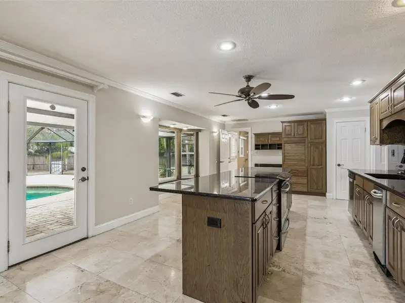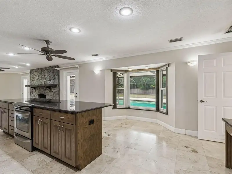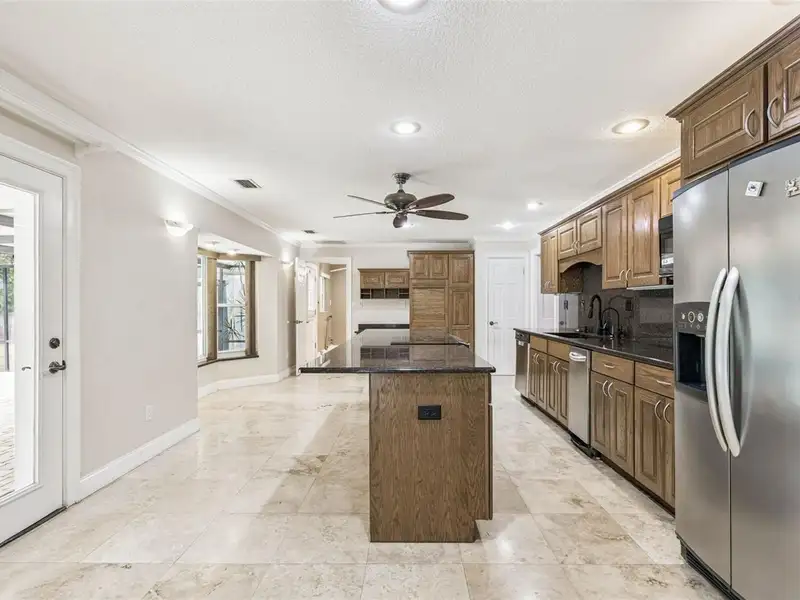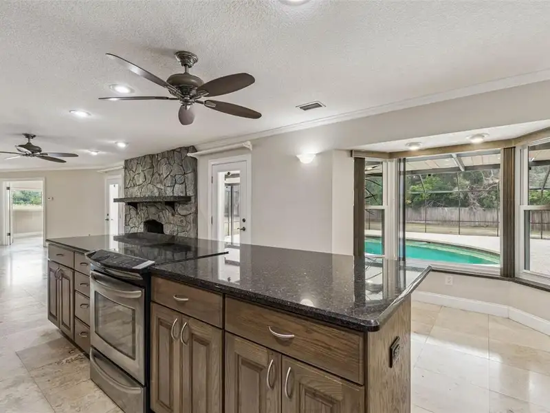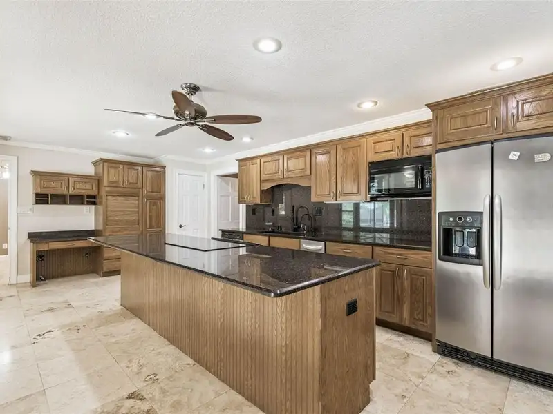 Welcome to your private slice of Valrico paradise. Tucked away at the end of a quiet cul-de-sac, this 3,187 sq. ft. estate sits on 4.12 acres with water views of the private waters of Valrico Lake—and lake access included. Properties like this rarely come available. The home is designed for comfort, gatherings, and effortless indoor–outdoor living. Step through double doors into a spacious foyer. The formal living room showcases charming bay windows, while the large formal dining room—complete with a bi-directional door to the kitchen—is perfect for hosting holidays and special occasions. The kitchen offers granite countertops, abundant cabinetry, stainless steel appliances, and its own bay window with peaceful views. It opens to a warm, inviting family room centered around a stone wood-burning fireplace, with multiple entryways leading to the lanai. A generous bonus/flex room also connects directly to the outdoor living space, making it ideal for game nights, hobbies, or a second gathering area. The primary suite is a true retreat, featuring a private sitting room and exclusive access to its own screened patio. The ensuite bathroom includes dual sinks, a large walk-in shower, and a spacious walk-in closet with built-in shelving. Two additional oversized bedrooms, 3.5 total bathrooms, and a large indoor laundry room provide plenty of room to spread out. The home also includes a wheelchair ramp that can stay or be easily removed, along with an extra storage room off the garage. Step outside to the massive screened lanai, highlighted by a sparkling 12-foot-deep in-ground pool and an extended paver patio—an entertainer’s dream. Whether you're hosting a summer BBQ, unwinding after a long day, or watching wildlife near the lake, this space is meant to be lived in. The entire property is fully fenced, with an oversized driveway offering ample parking for guests, trailers, equipment, or all of the above. Two impressive barns—both powered with electric—expand the possibilities even further. Barn 1 (approx. 50’ x 20’) features garage doors on both ends, and an attached extension perfect for a greenhouse or additional storage. Barn 2 (approx. 58’ x 36’) includes built-in shelving and generous space ideal for workshops, business operations, hobbies, or agricultural use. The property is zoned agricultural, offering flexibility you simply don’t find in a typical residential setting. A gated rear entrance at the back of the property provides convenient access to Front St., especially for larger vehicles and equipment. With well and septic, a water softener, private lake access, two powered barns, and 4.12 acres of usable land, this estate blends privacy, space, and endless opportunity—all in a highly desirable Valrico location. Bring your vision. Bring your toys. Bring your business. NO HOA or CDD! This property is ready for whatever you dream next. Only 3 miles from State Road 60, where you’ll find every convenience you will need- shopping and dining, close to the hospital, near major interstates for easy commuting, and only about 16 miles from Downtown Tampa.