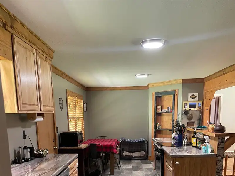 - Open-concept kitchen with granite tile island