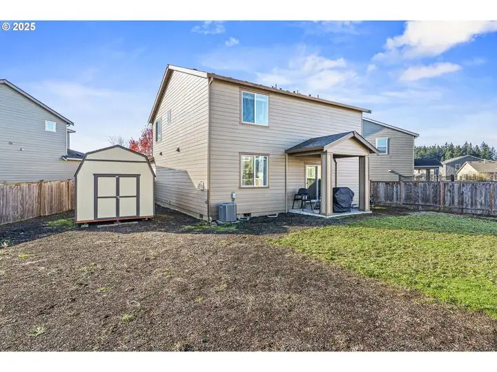 - Covered patio and spacious backyard with tool shed