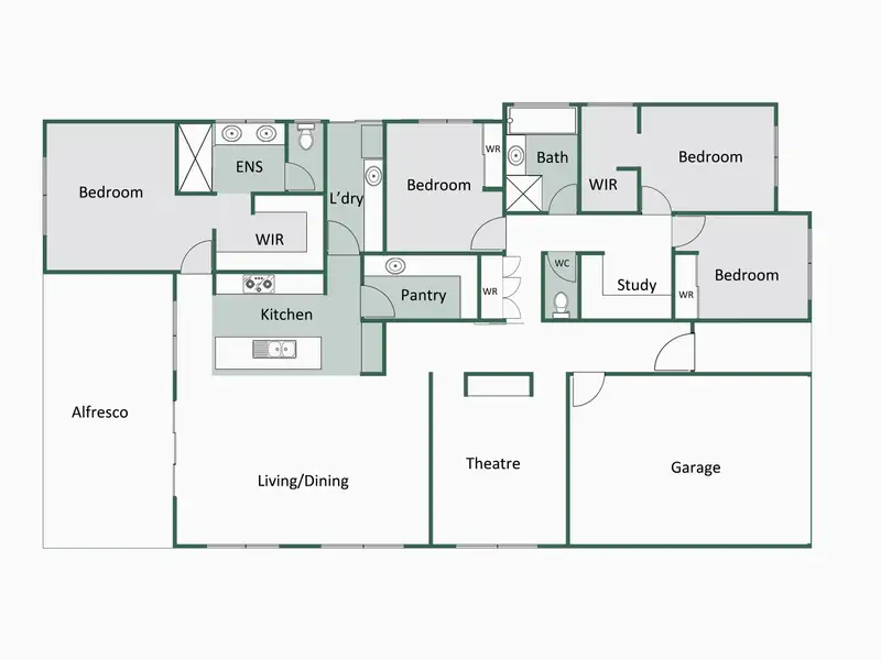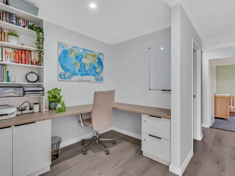 The 3-bedrooms positioned towards the front of the home are generously sized. A study nook provides a quiet space for work or education, and the main bathroom is conveniently positioned nearby.