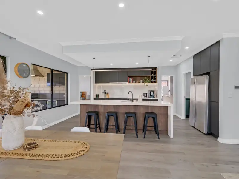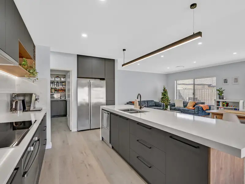 Stepping through the front door of this lovely modern home, you're welcomed into a bright and airy atmosphere that sets the tone for the entire space. At the heart of the home is everything today's family could need. Here, the open-plan layout connects seamlessly to the dining, living, and kitchen areas, creating an inviting environment perfect for entertaining and family conversation.