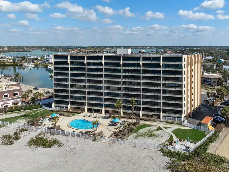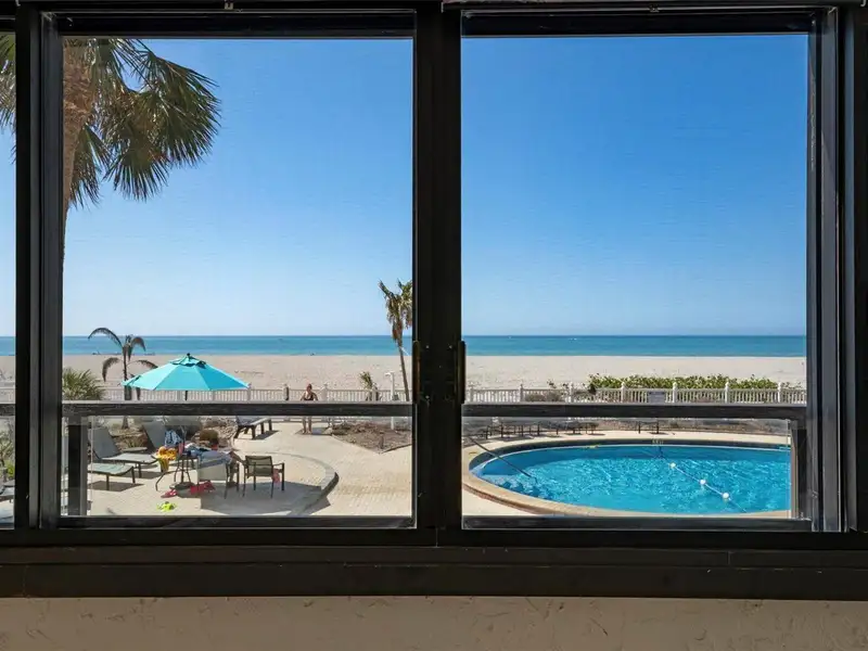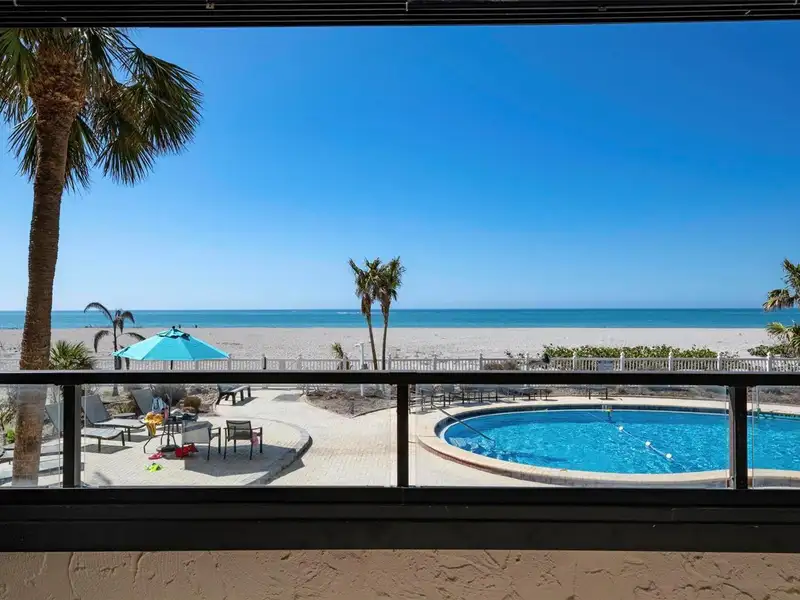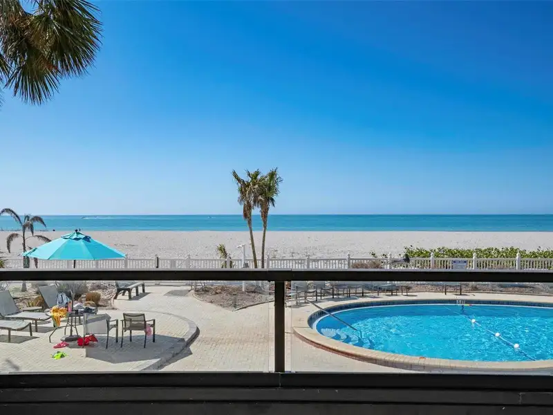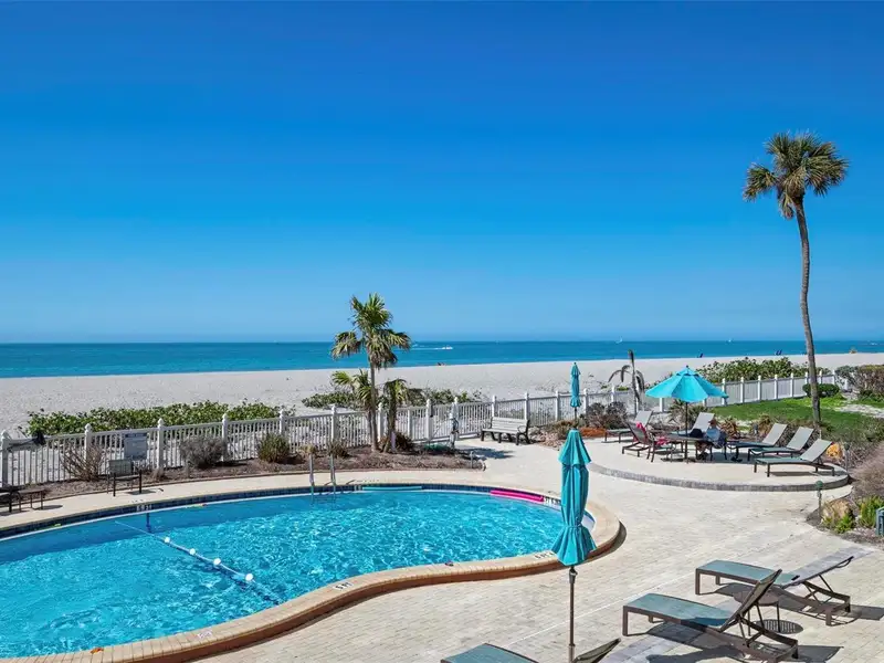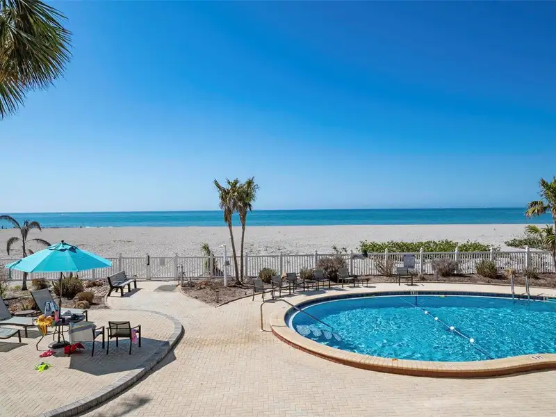 - Community amenities include pool, private beach, and clubhouse