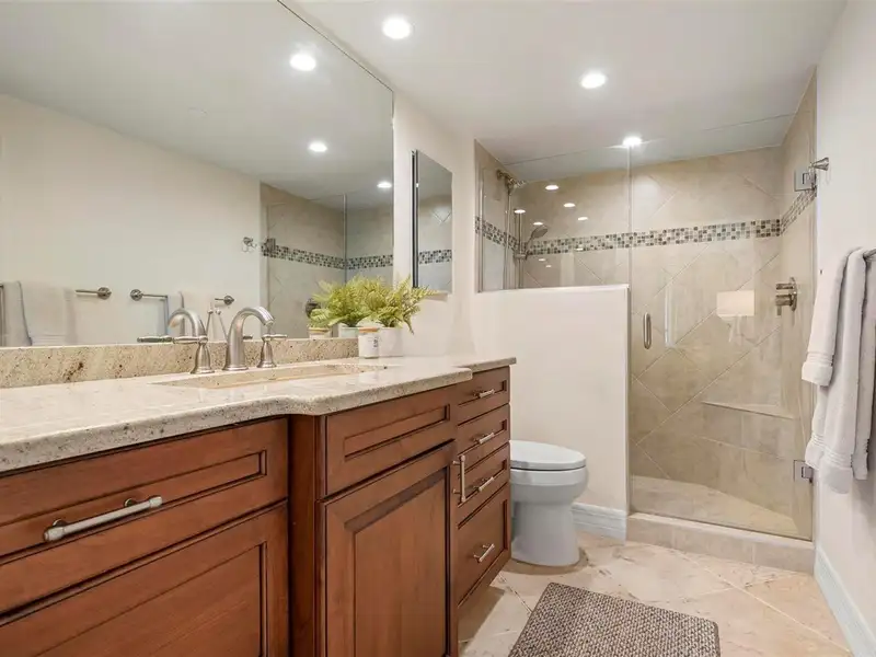 - Travertine tile flooring throughout, no carpet