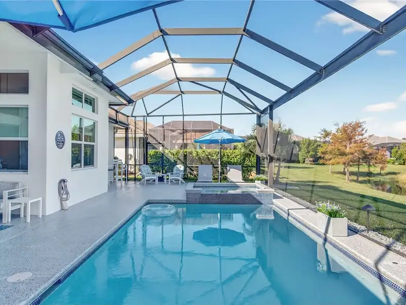 - Screened lanai overlooking peaceful lake