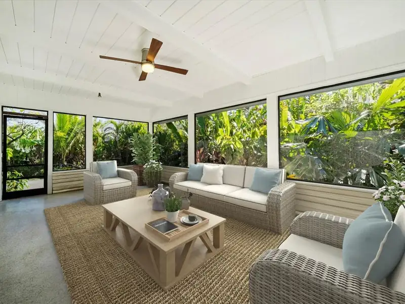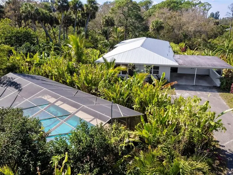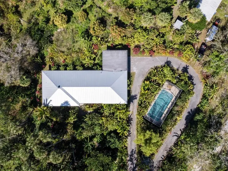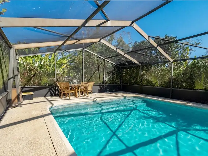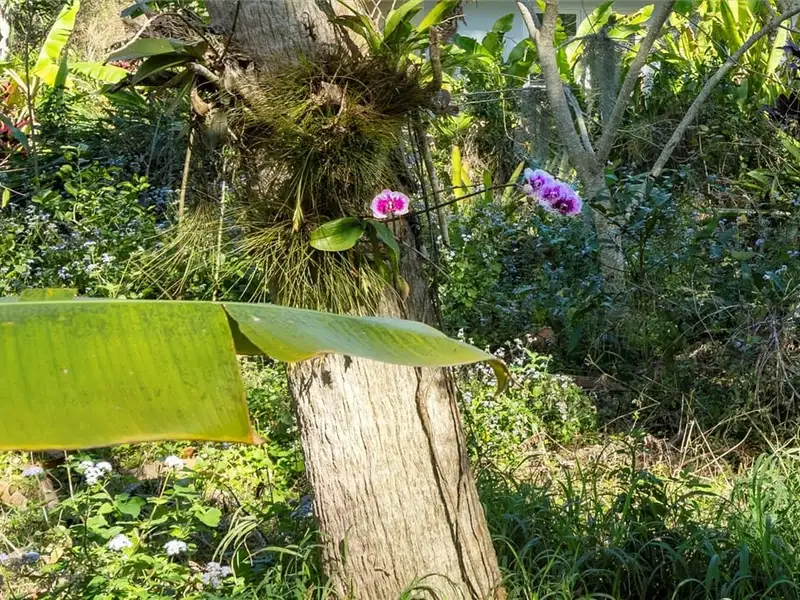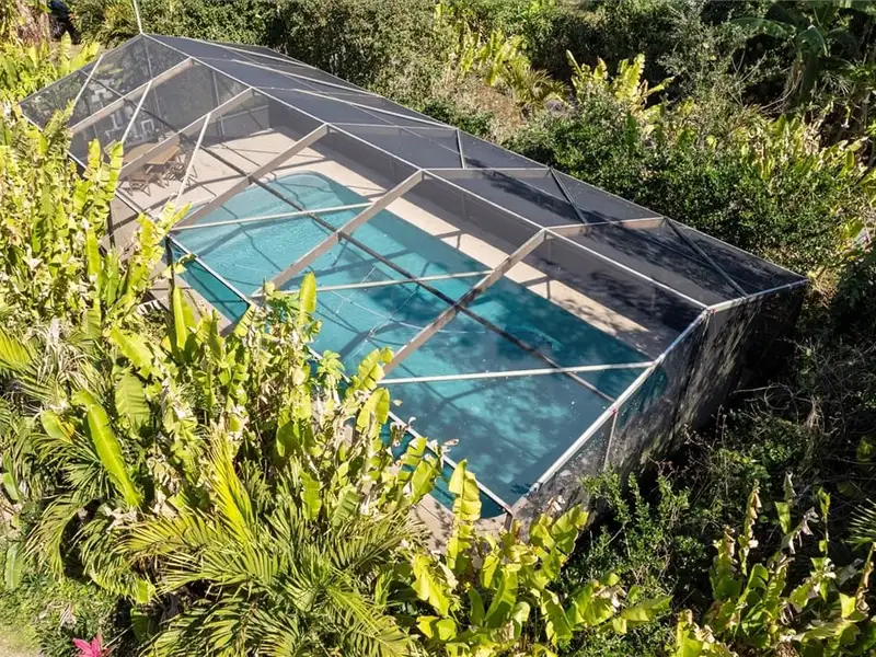 - Screened pool with surrounding orchids