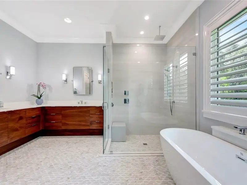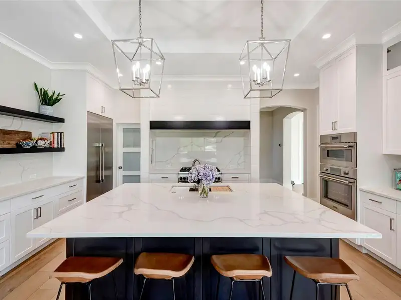 - Thermador/Sub-Zero kitchen with quartz countertops