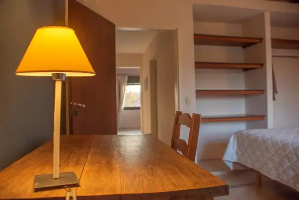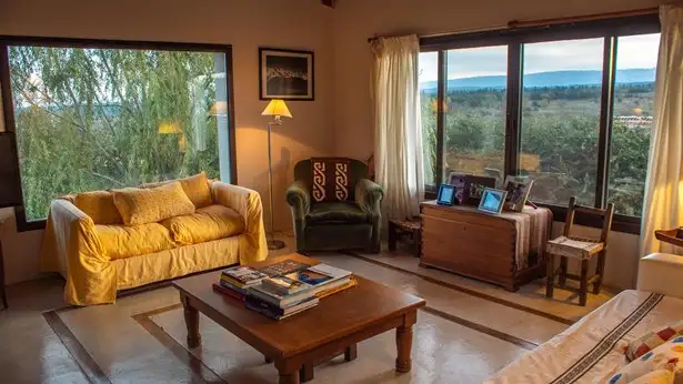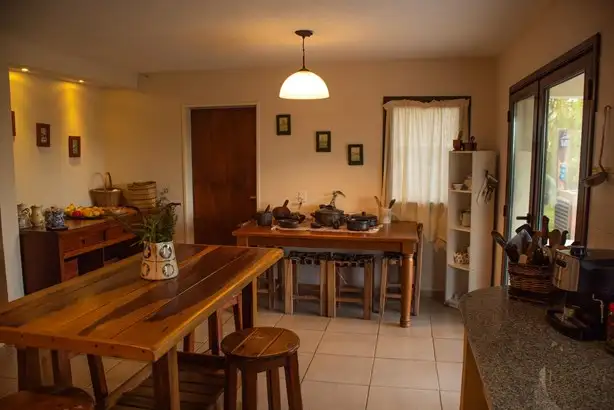 En la planta baja posee un amplio ambiente de living - comedor con salida a la galería con vista a ambas sierras y al sur con grandes ventanales, una estufa Tromen en el centro con tubería para calefaccionar los ambientes.