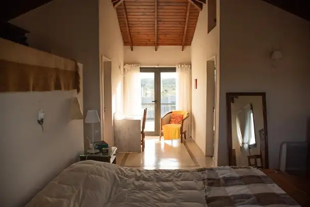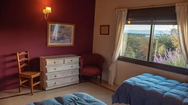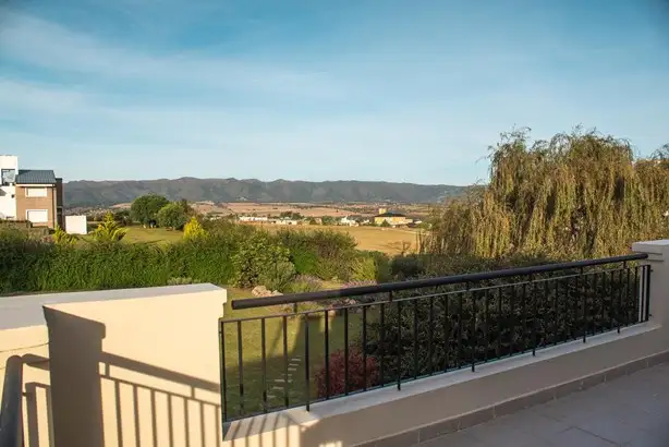En el nivel superior se encuentra la habitación principal con baño en suite con bañadera, dos (2) balcones, al oeste con vistas a las sierras grandes y al este con vista al jardín y sierras chicas.