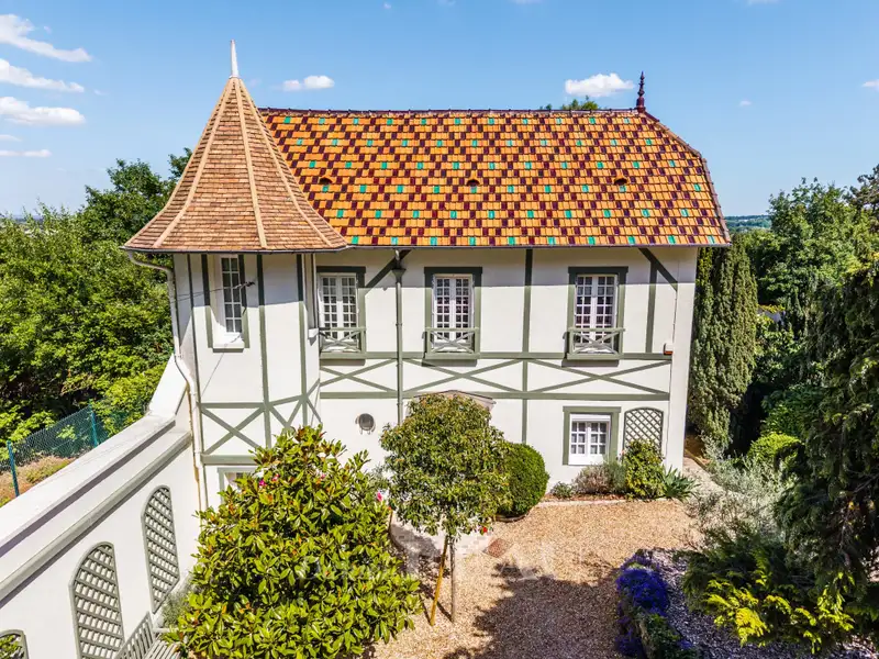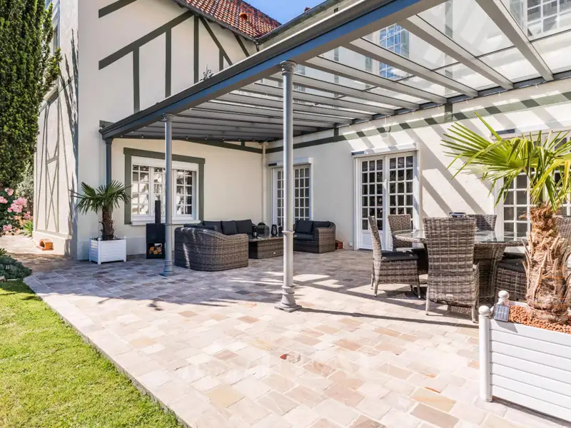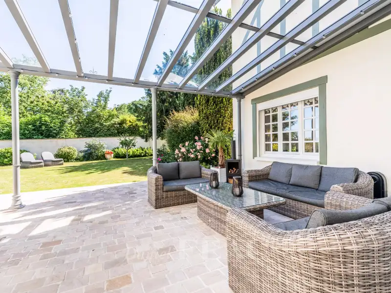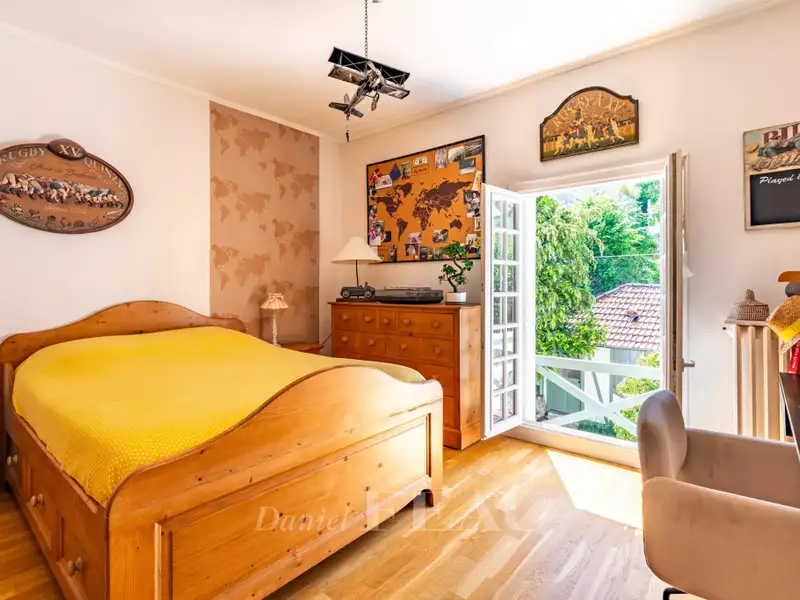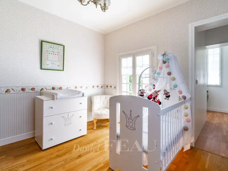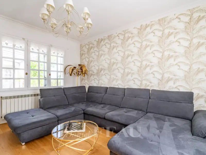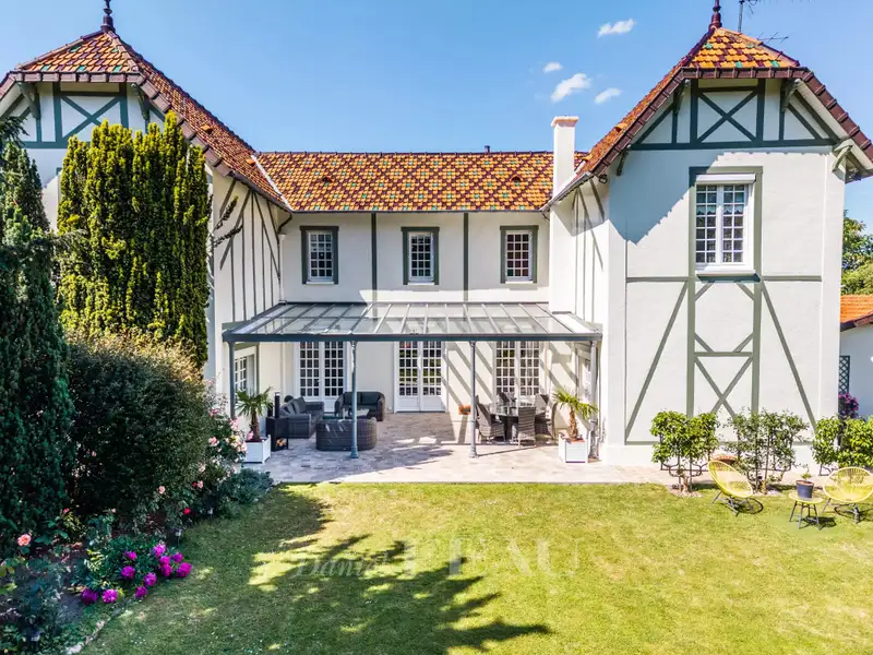 This delightful listed 19th century belle-Epoque style property is set in a leafy 985 sqm plot just a five-minute walk from the station, and near the shops and the schools. In perfect condition, it includes a spacious entry with a cloakroom, a utility room and a guest wc, a drawing room, a living/reception room with a fireplace, a 44 sqm kitchen with dining facilities, and an adjacent pantry. Upstairs are two suites, a study, three bedrooms, a shower room and a separate wc. On a total basement with a superb wine cellar, a boiler room and storage space. With a convertible annex, a 2-car garage and outdoor parking space. A swimming pool would be possible.