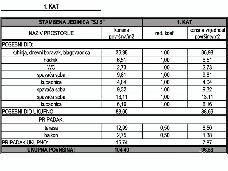 Apartment S-5 - 1st floor - living area 88.66 m2 (3 bedrooms + 2 bathrooms + WC) + terrace (13 m2 - SE) + balcony (3 m2 - SW) + garage parking space + storage in the basement, net calculation area 105.99 m2 = 476,955 EUR