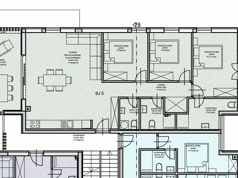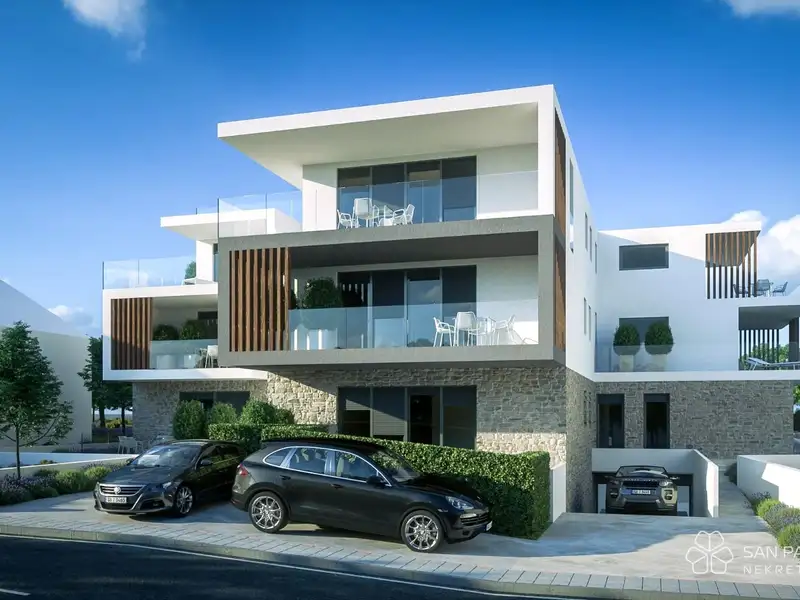 The building consists of a basement with garages and storage areas, providing residents with practical parking solutions and additional storage space. The ground-floor apartments have the advantage of their own garden, ideal for relaxing outdoors. On the first floor, the apartments feature spacious terraces and balconies that offer excellent views and space for socializing, while the second-floor apartments, in addition to terraces, have access to impressive rooftop terraces, adding a special charm and exclusivity.