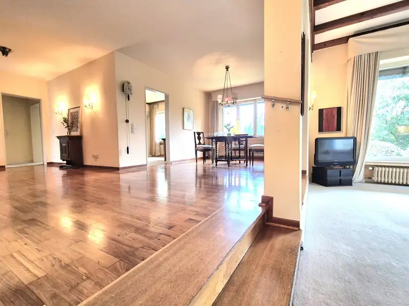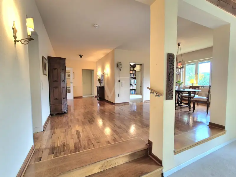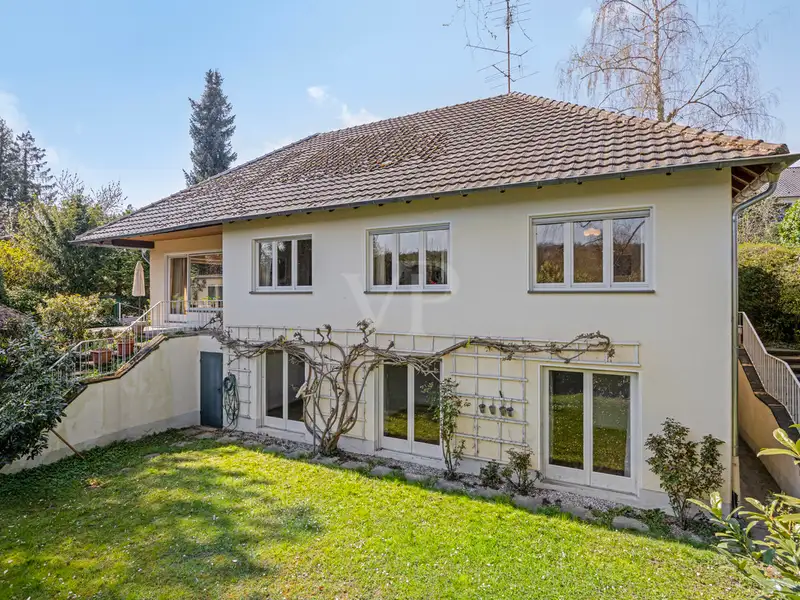 This exceptional detached house awaits you in the middle of the sought-after elevated location of Wachtberg - Pech - a truly unique property with an impressive sense of space and versatile potential. Situated on a sunny, 765 m² hillside plot, the property with around 185 m² of living space offers plenty of room for family, individuality and creative ideas.
