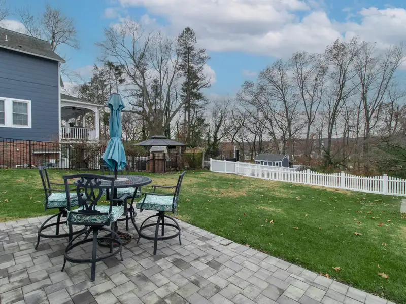 - Open, partially fenced yard with patio