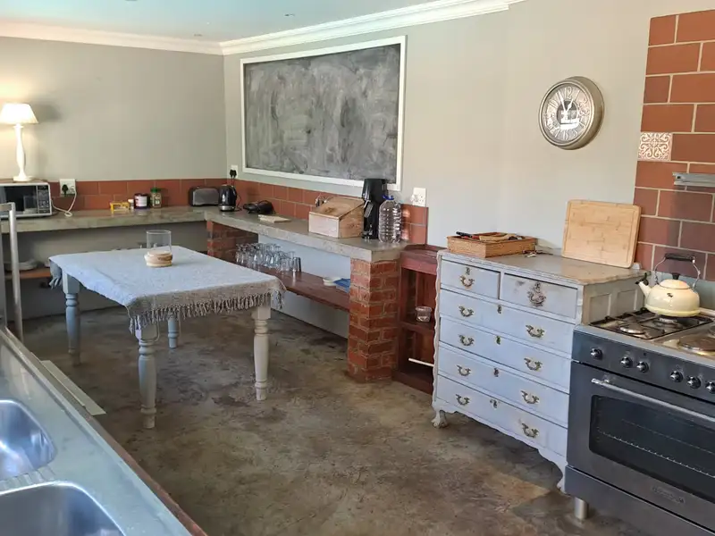 - Spacious farm-style kitchen with gas stove