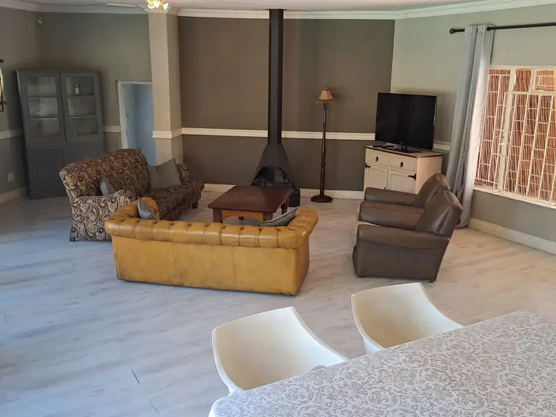 - Large open living area with fireplace