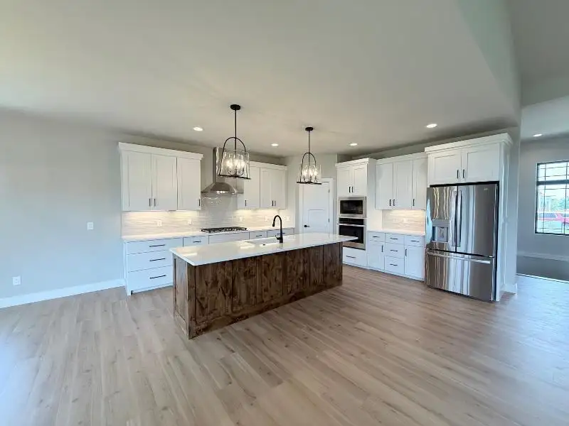 - Quartz countertops with island