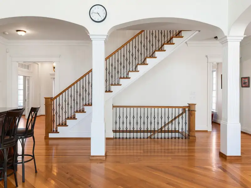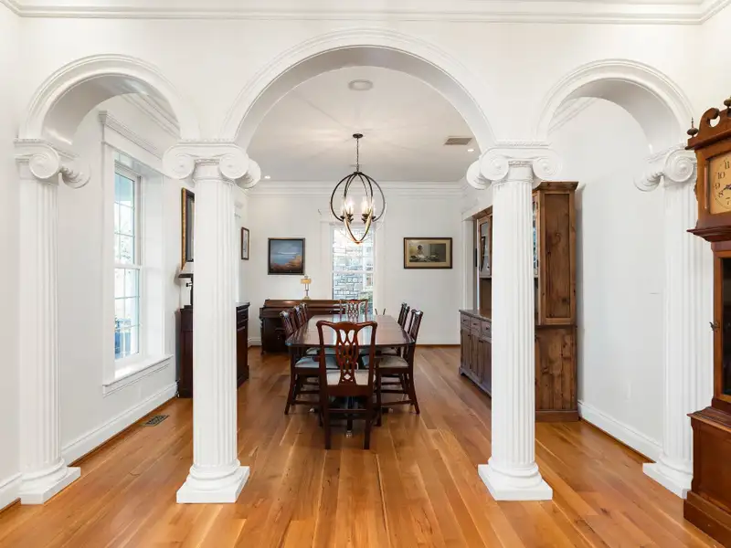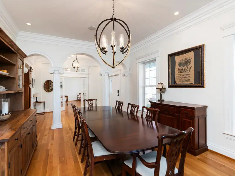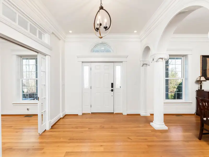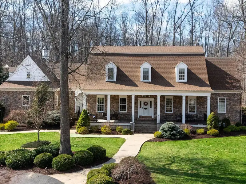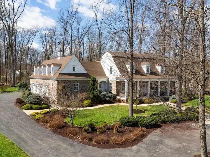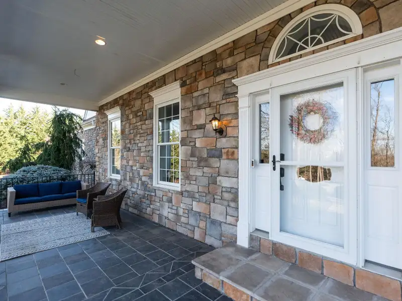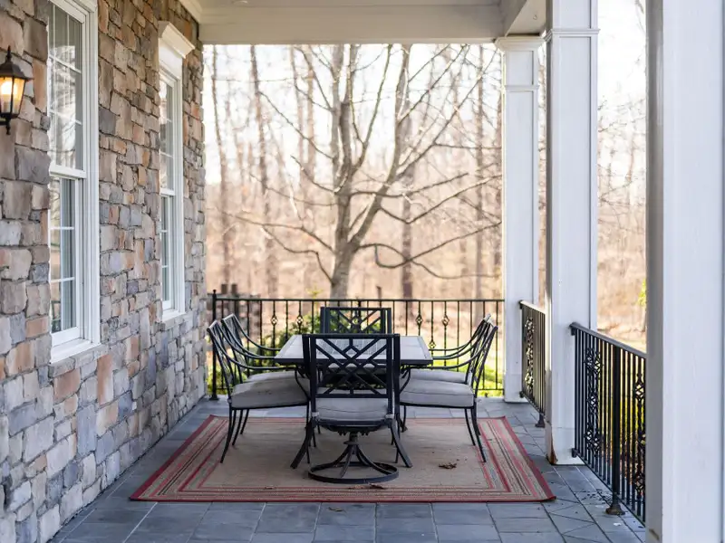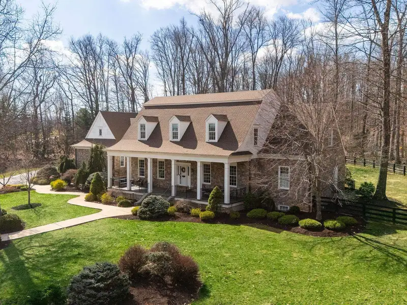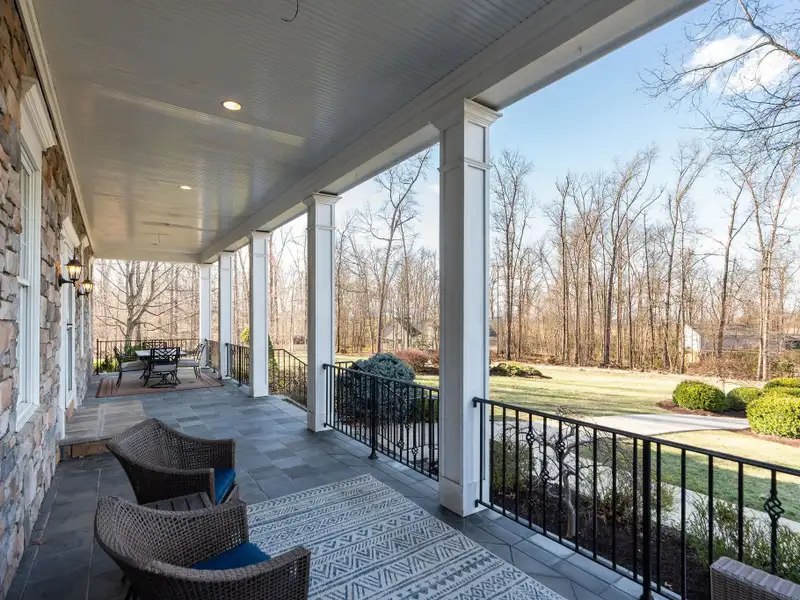 - Massive front porch with circular driveway