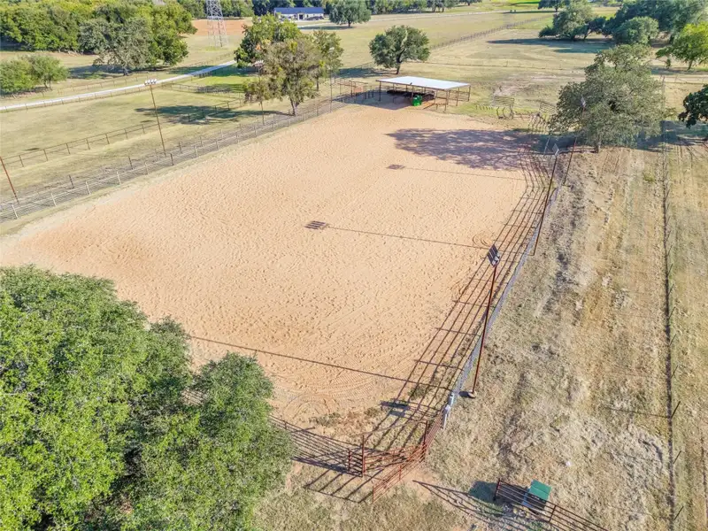 - Large covered riding arena with lighting