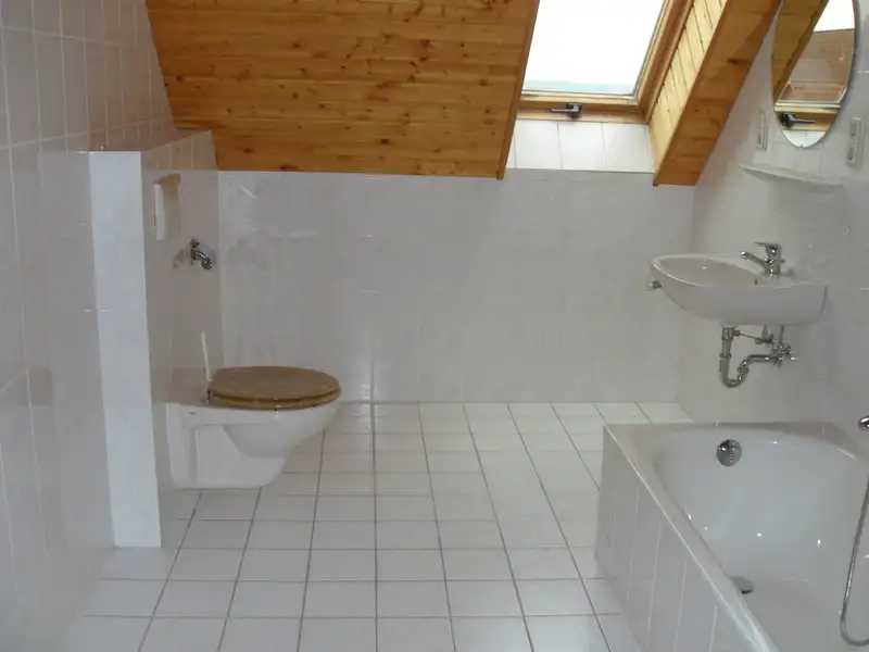 Two residential units are arranged on the first floor. The apartments are largely similar cut and equipped. On the right side of the entrance are the smaller apartments with about 60 m² and on the left side the two larger apartments with about 90 m² living space. The two other apartments are available in the converted attic. Furthermore, if necessary, the attic could be further developed. The separately adjustable underfloor heating provides for a pleasant warmth. The floors are covered with tiles, laminate and carpet. The apartments all have exterior shutters.