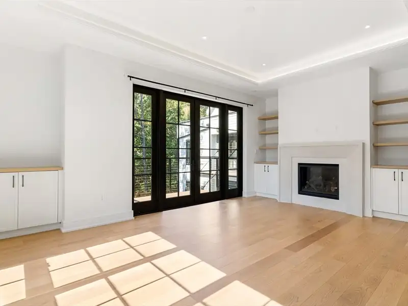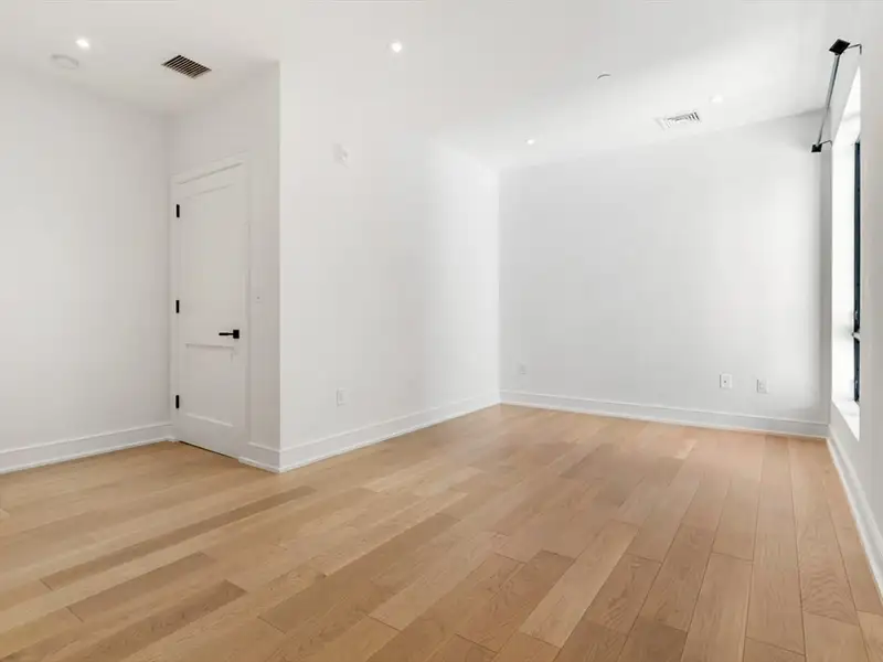- Wide-plank white oak flooring