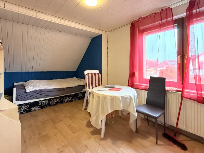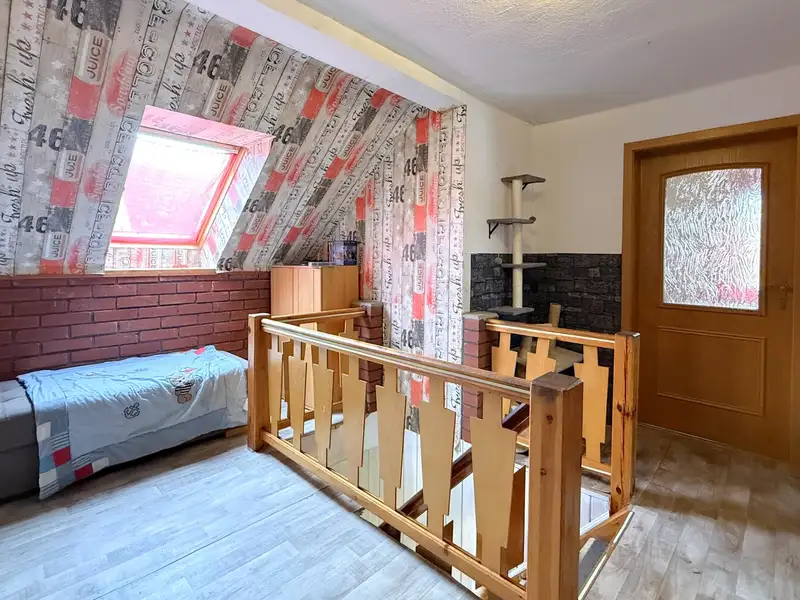 On the first floor there is a spacious living room (currently divided), a cozy bedroom, a dining room with access to the terrace, a spacious kitchen with adjoining pantry and a bathroom with bathtub. On the top floor there are three further rooms and a bathroom with shower - plenty of space for family, guests or working from home.