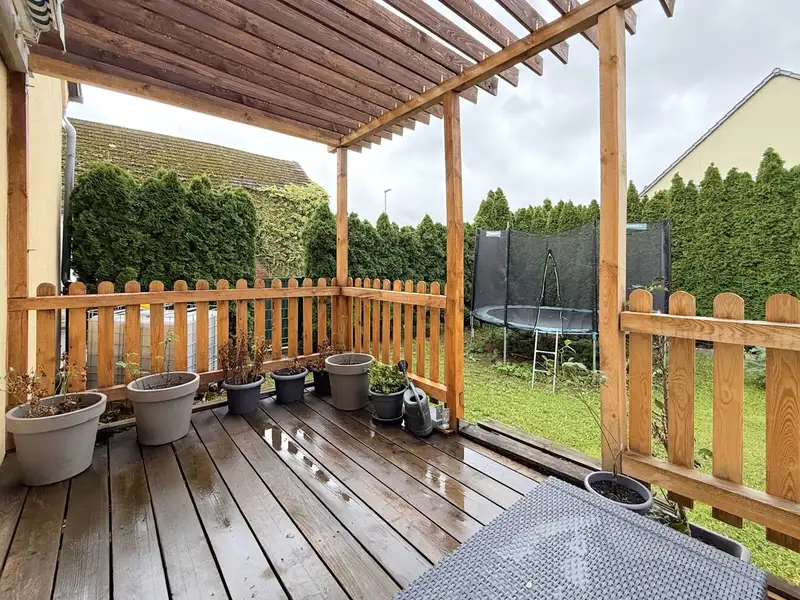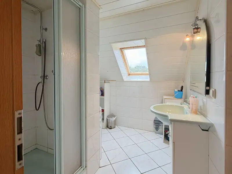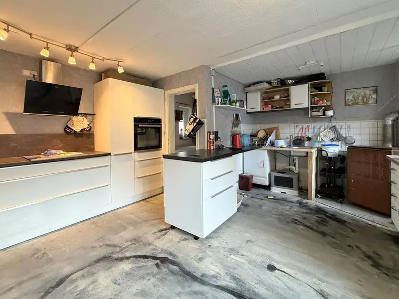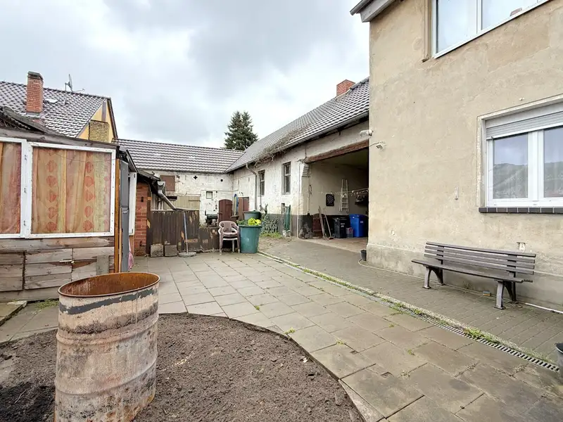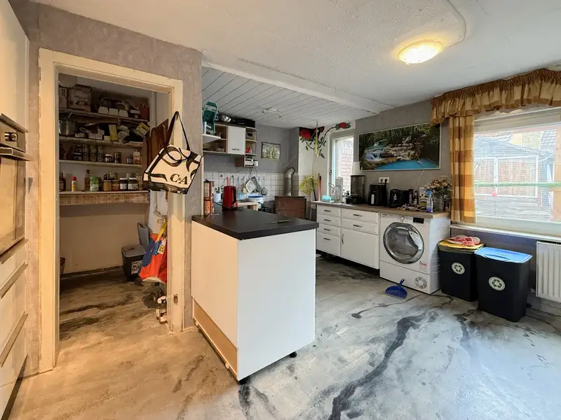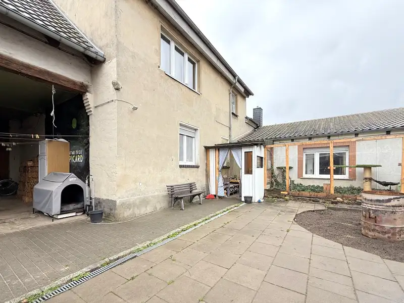 The approximately 510 m² property boasts a clear layout. The low-maintenance garden can be accessed via the terrace. This is completely enclosed and surrounded by opaque hedges. The inner courtyard is unpaved and thus retains its original, rural character. It is surrounded by charming brick buildings consisting of a double garage, a tool shed and a large barn that could be converted or extended. A large barn door leads from the street directly into the inner courtyard. Part of the building area is located on the adjacent neighboring property; its use is contractually regulated by an existing lease agreement.