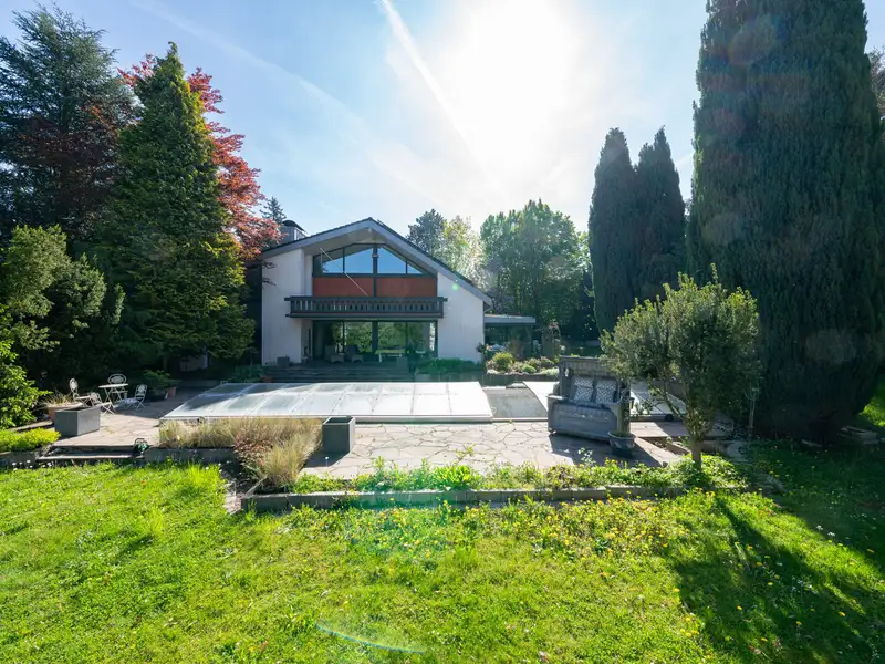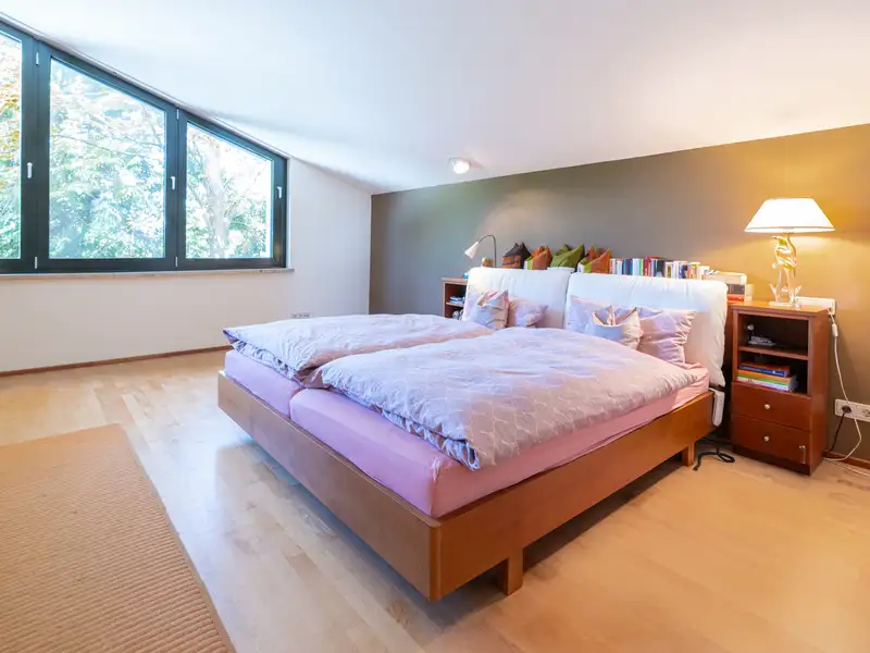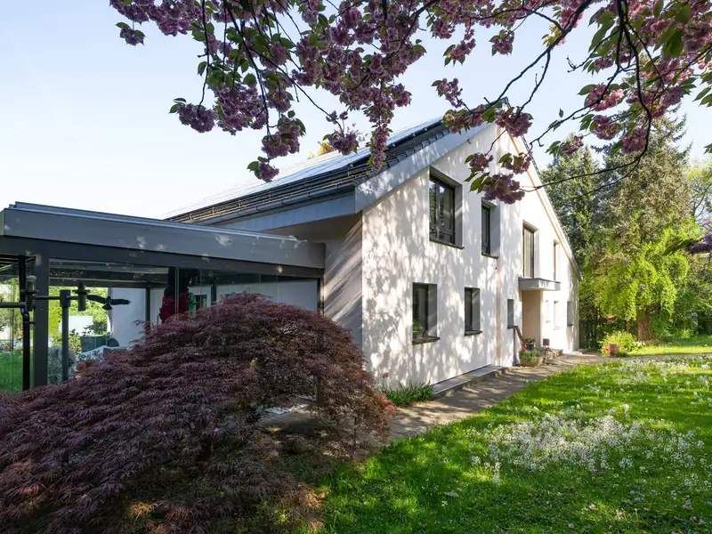 Hidden behind dense, mature trees and therefore almost invisible from the outside, an idyllic home unfolds on an ingrown plot of around 3,000 m², combining tranquillity, exclusivity and closeness to nature. The villa-like property is located almost centrally in the middle of this green oasis - a prestigious home that harmoniously combines stylish living and sophisticated living on approx. 336 m² of living space.