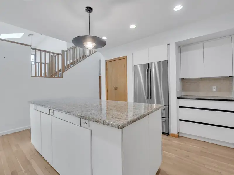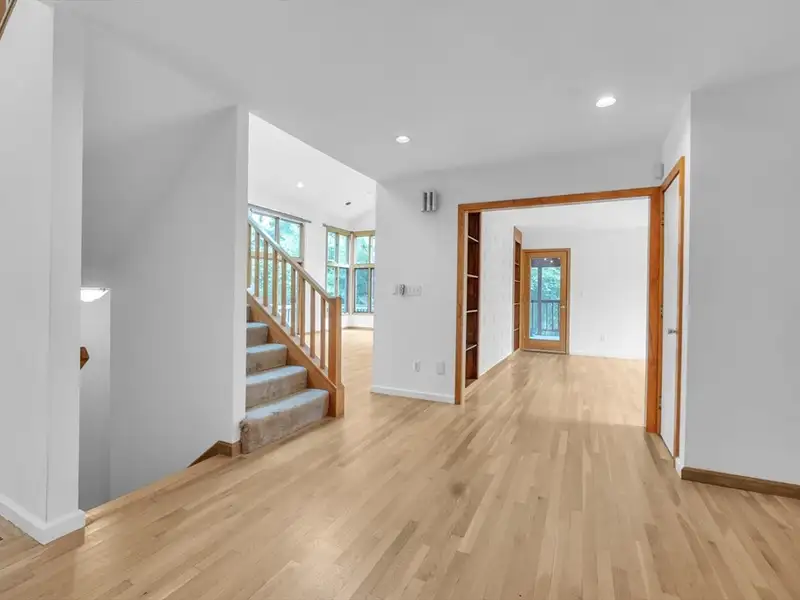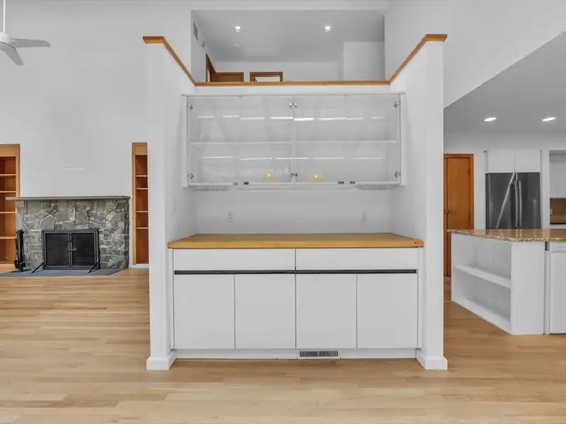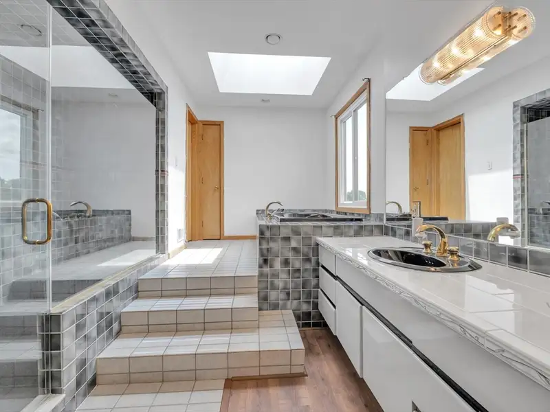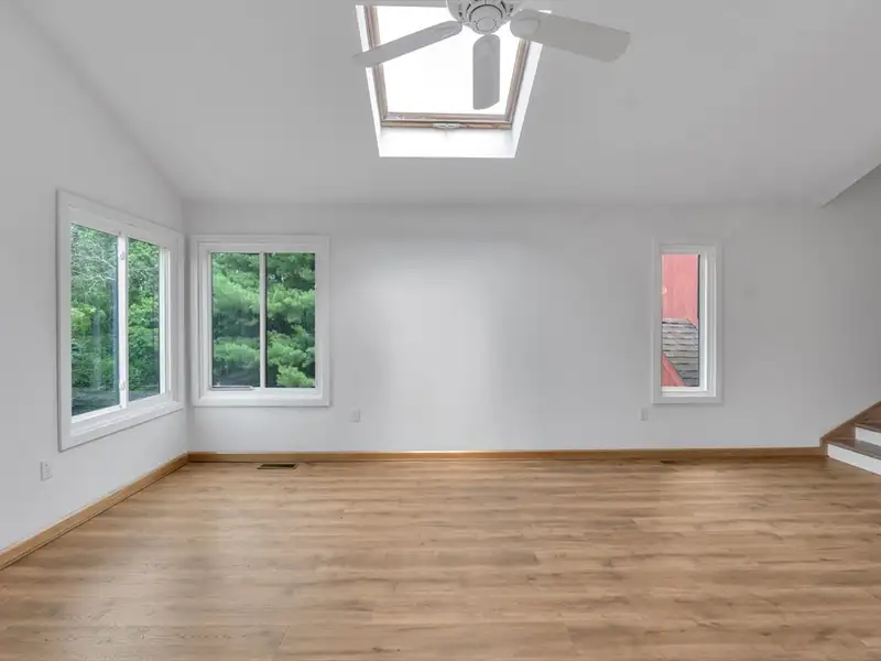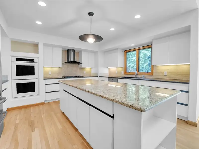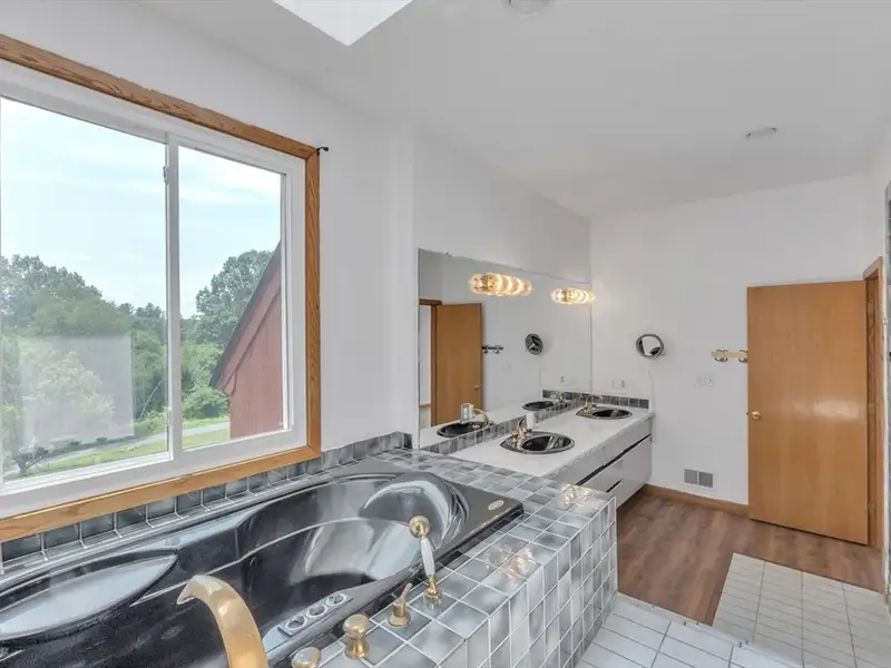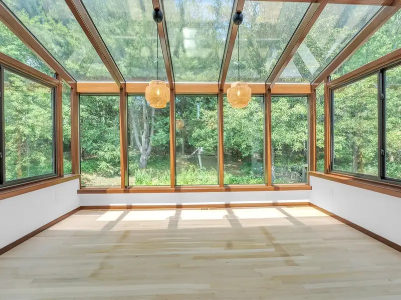 This beautifully maintained contemporary home is privately set back by a winding driveway through vibrant perennial gardens, fruit, & ornamental trees. Enjoy stunning sunset views from both the front porch and rear deck.The open-concept first floor features hardwood floors, cathedral ceilings, skylights, & a chef s kitchen with a granite island, white cabinetry, stainless appliances, 5-burner gas range, funnel vent hood, and walk-in pantry. The kitchen opens up to a new glass atrium, dining room and a spacious great room with built-ins, oversized windows, and a granite fireplace with bluestone mantel. First floor also includes an office/living room, half bath, and laundry. Upstairs, the ensuite primary bedroom offers a large tiled bath and walk-in closet. Two additional bedrooms & a full bath complete the second floor. This exceptional home blends elegance & functionality in a truly tranquil setting-perfect for those who appreciate natural beauty, privacy, & architectural distinction.