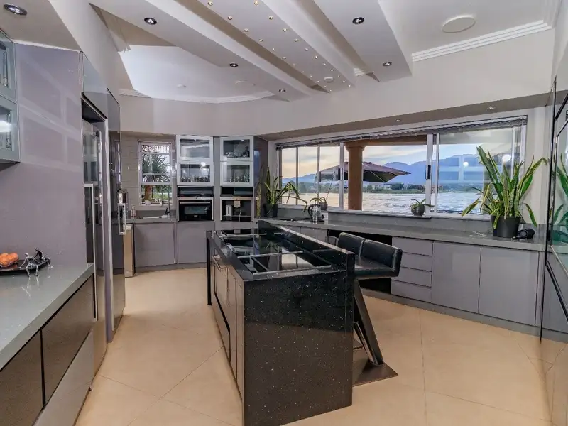 Positioned on the banks of Hartbeespoort Dam, this entertainer's paradise, offers a 270-degree water frontage with uninterrupted views, of the Hartbeespoort dam and the Magalies Mountains. Featuring a wrap-around composite jetty and deck, there's ample parking for all your "fun in the sun" toys!
