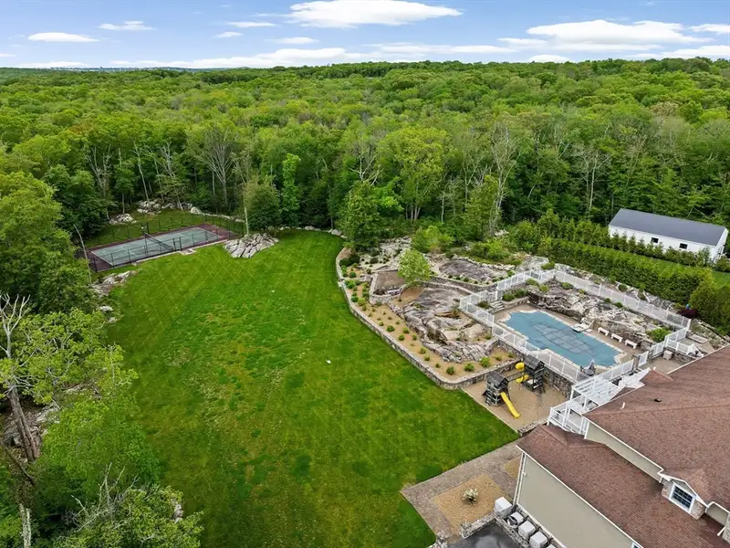 - Tennis court and koi pond
