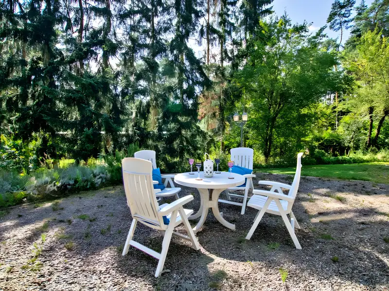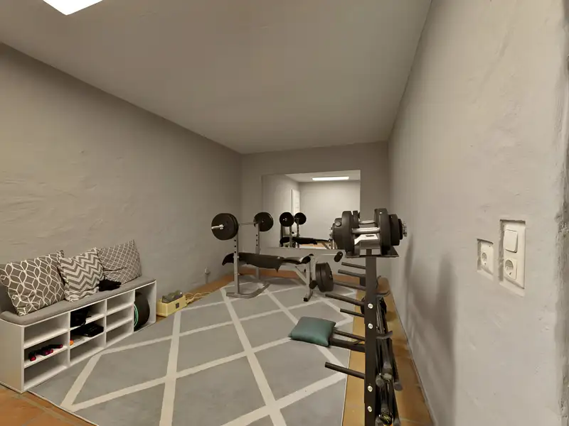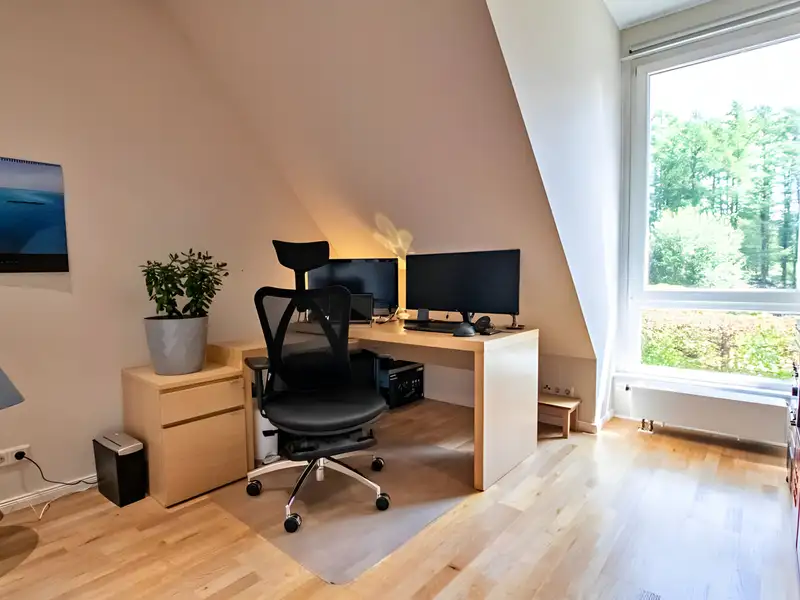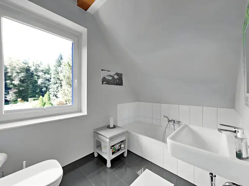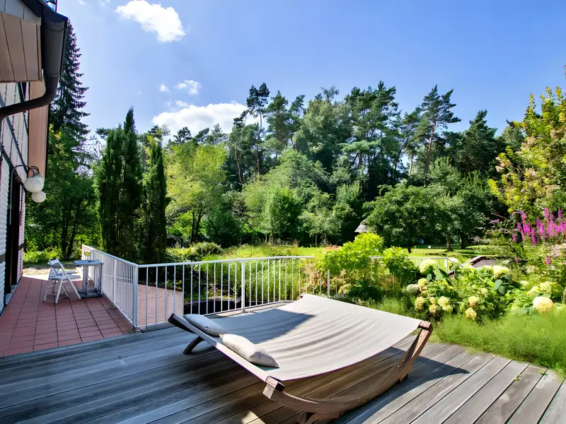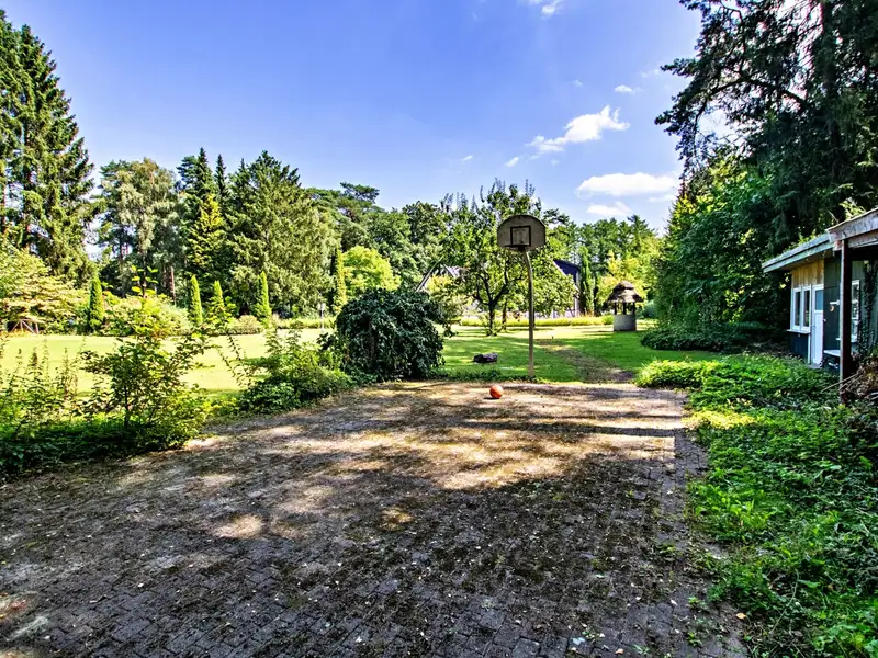 The fully fenced property, which is around two meters high, guarantees privacy and security. The spacious outdoor areas offer a variety of design options: from generous play areas and individually usable garden areas to relaxing on the terrace near the pool area. A carport with four parking spaces is available for your vehicles.