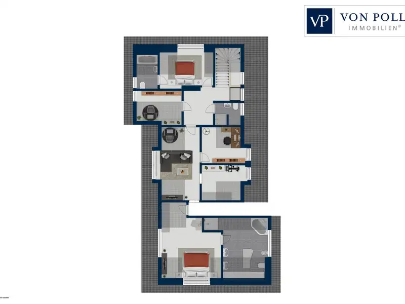 The room layout offers ideal possibilities for families: five bedrooms are available, which can be used individually. Four modern bathrooms offer comfort and functionality at the highest level.