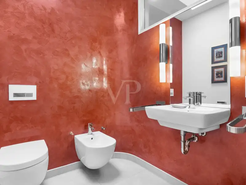 There are also two balconies or terraces, which are ideal for sunny days and relaxing hours outdoors. The property has a partial basement. In the basement there is a further bedroom, which can be used as a guest bedroom, with its own bathroom. Also in the basement are the boiler room with the heat pump, the switch cabinet and the server for the building services.