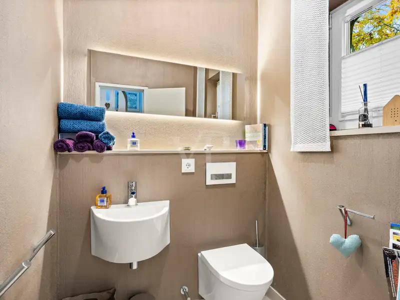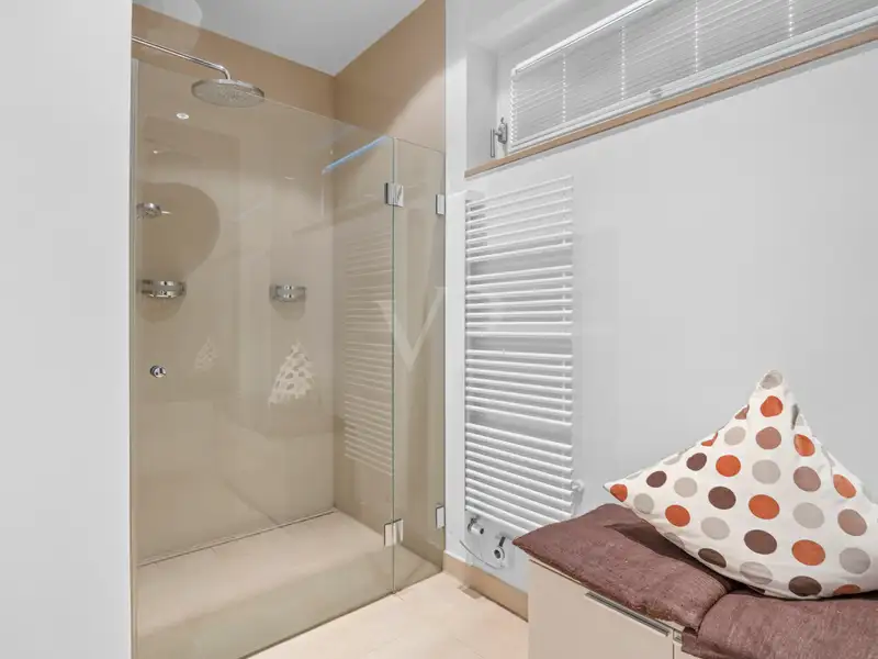 The house's advanced heating system deserves special mention. Equipped with efficient underfloor heating and an environmentally friendly heat pump, it ensures a pleasant indoor climate all year round. This modern heating system underlines the high quality of the property and ensures low energy consumption.
