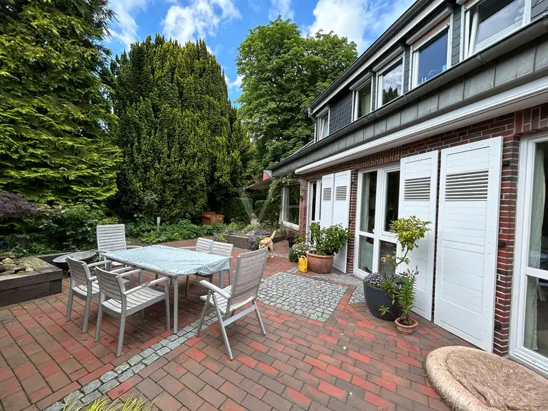 The property is situated on an impressive plot of approx. 987 m², which offers a wide range of possible uses. The outdoor area is ideal for leisure activities and for creating a garden paradise. The well-kept garden, laid out as an attractive south-facing garden with a brick garden shed, was designed and laid out in two construction phases by a gardening company. It offers plenty of space for children and pets and gives the property a pleasant atmosphere.