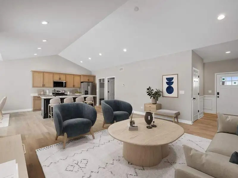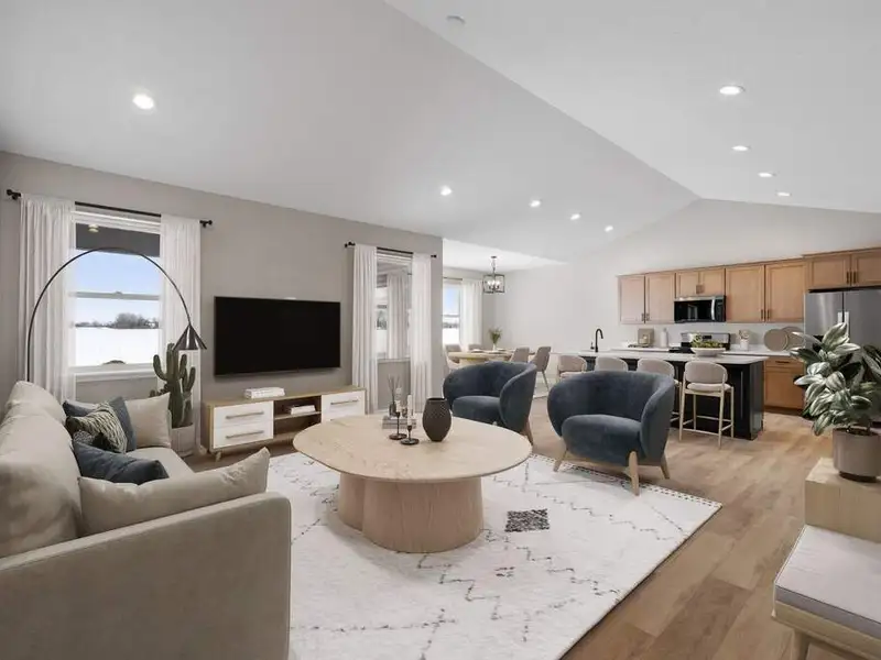 - Open-concept floorplan with vaulted ceilings