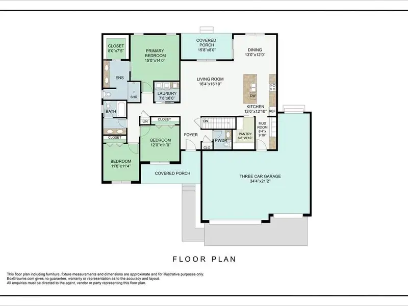 - Brick and stone facade with covered porch