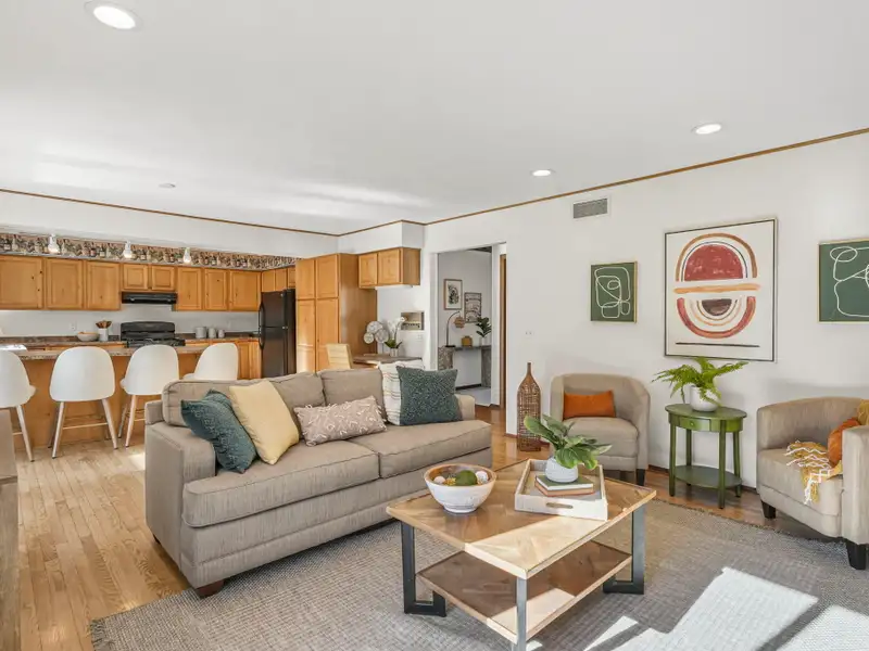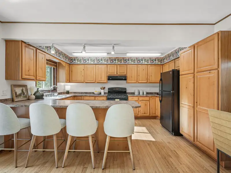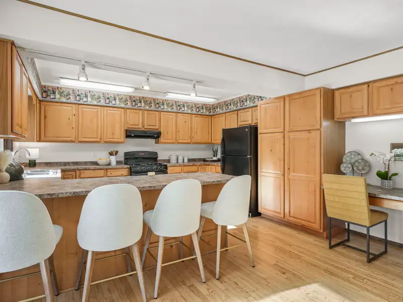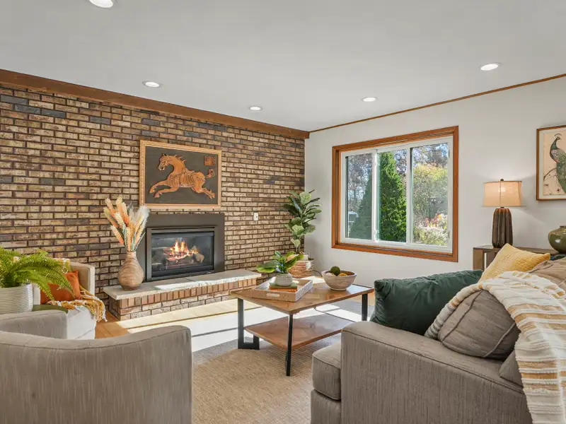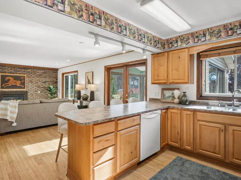 - Open concept kitchen with gas fireplace