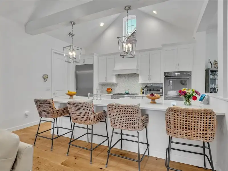 Relax on the charming front covered porch, the perfect spot to enjoy your morning coffee. Step inside to find meticulous attention to detail—from stunning wide white oak floors to exquisite custom millwork and soaring ceilings that create an airy, welcoming atmosphere.